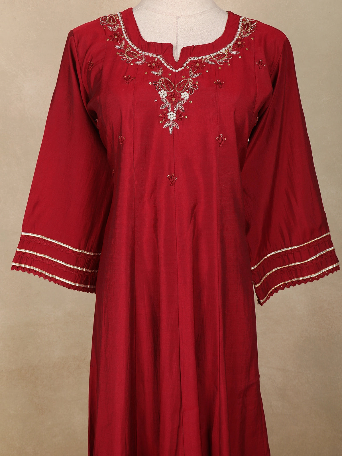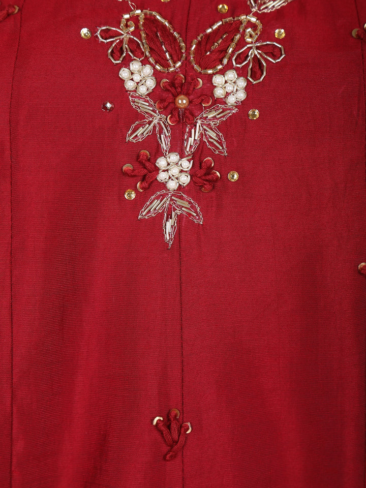 Maroon Floral Embroidered Cotton Salwar Suit with Dupatta