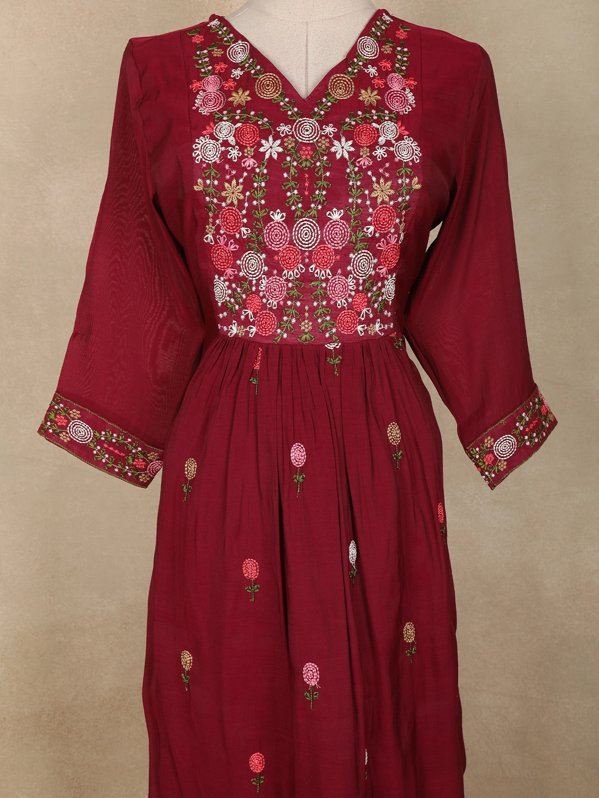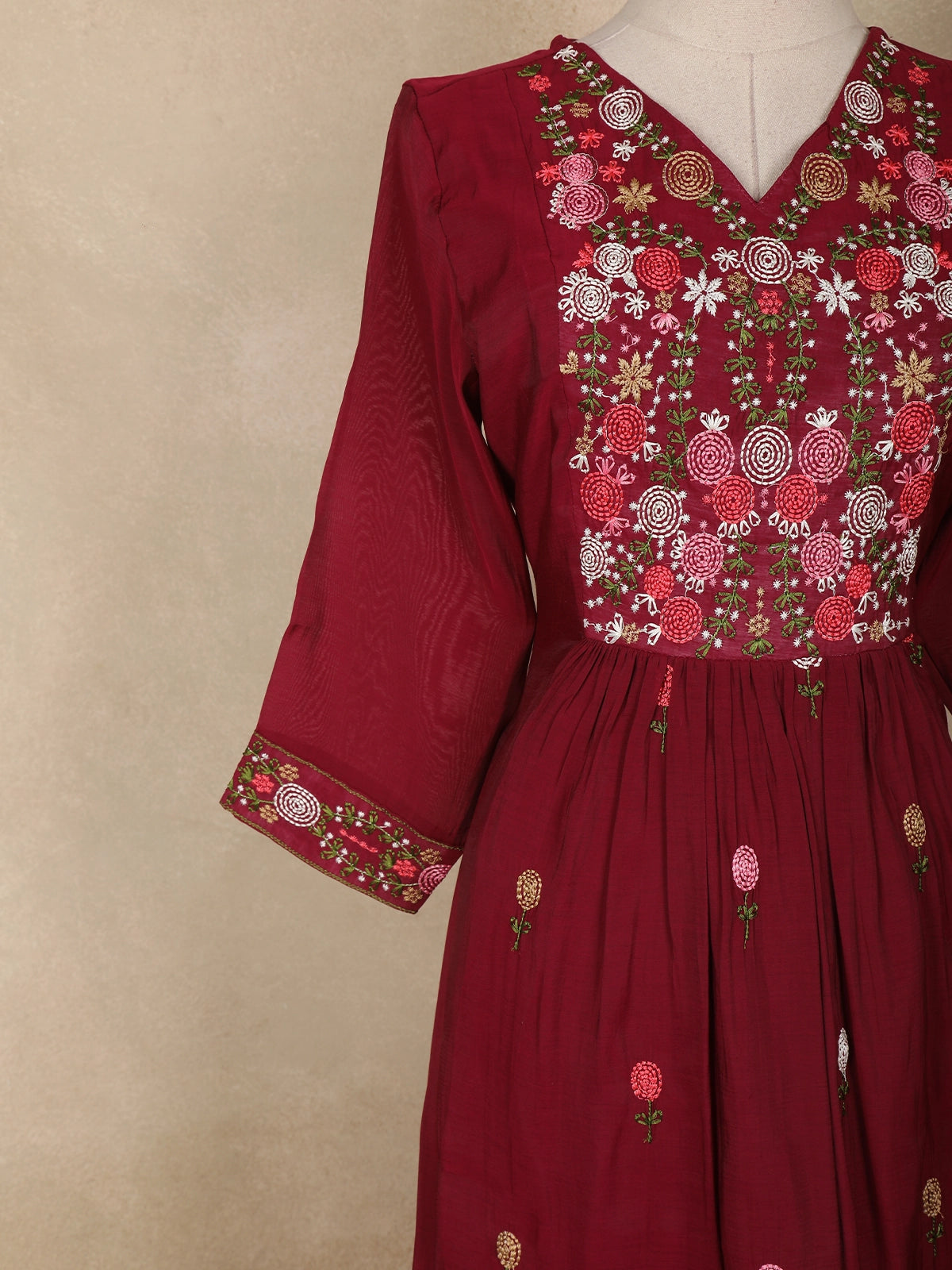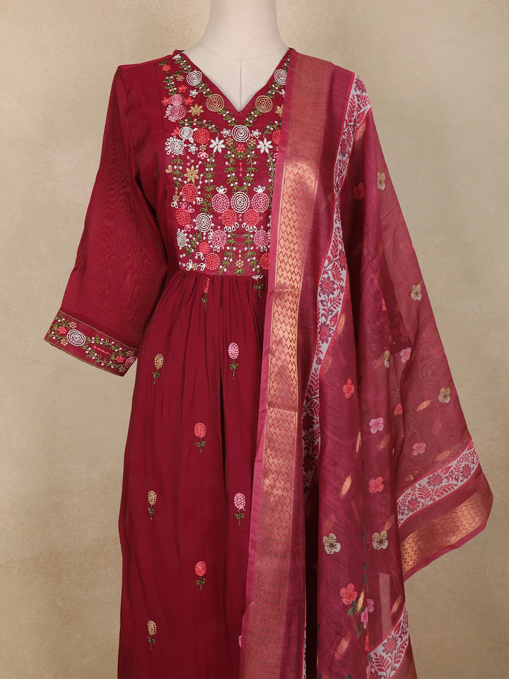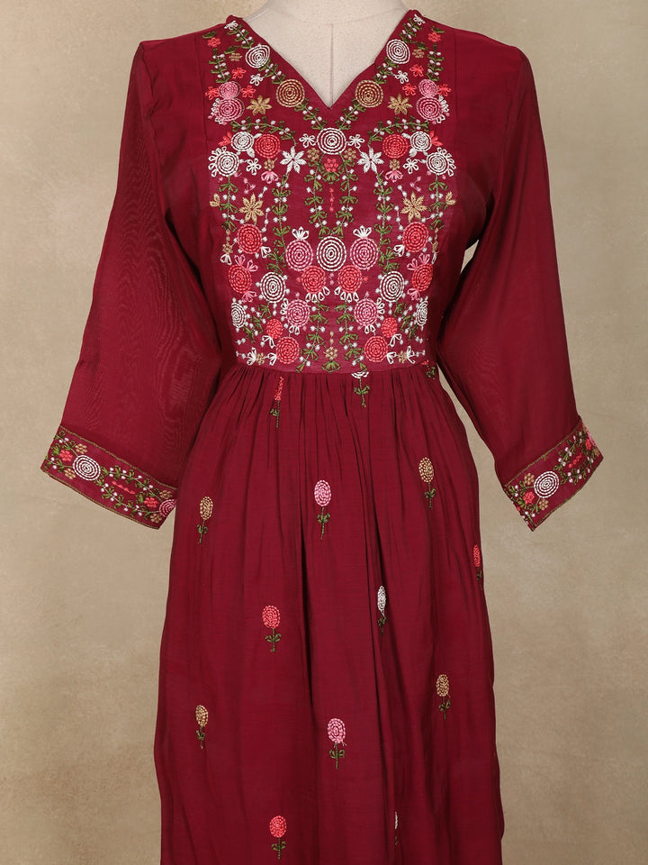 Maroon Floral Embroidered Design Cotton Anarkali Salwar Suit