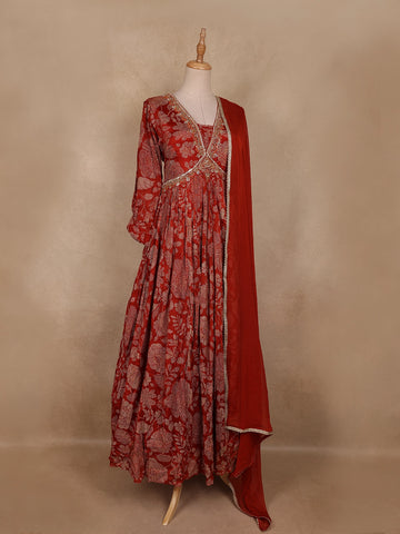 Maroon Floral Embroidered Design Georgette Gown With Dupatta