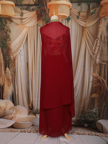 Maroon Floral Embroidered Design Georgette Skirt Top with Dupatta