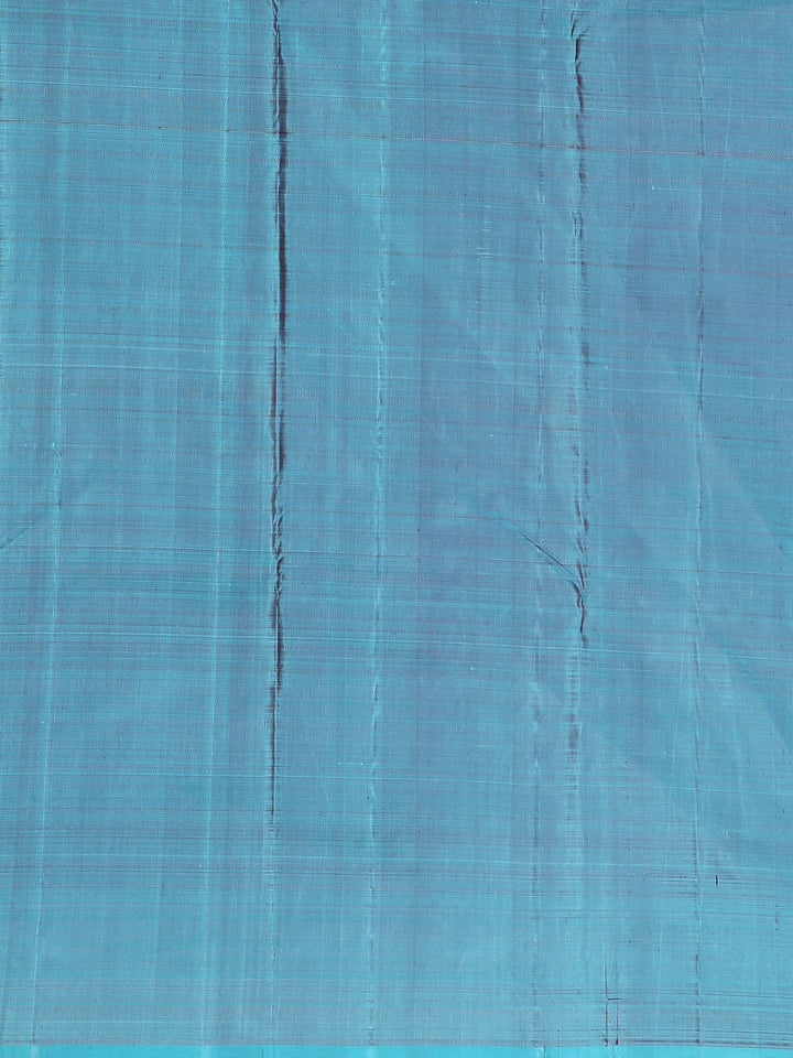 The saree is complemented by a breathtaking aqua blue contrast pallu, intricately detailed with shimmering zari weaving, adding a festive radiance to every movement. Paired with a matching aqua blue blouse, this ensemble is crafted to make you stand out effortlessly at grand celebrations.