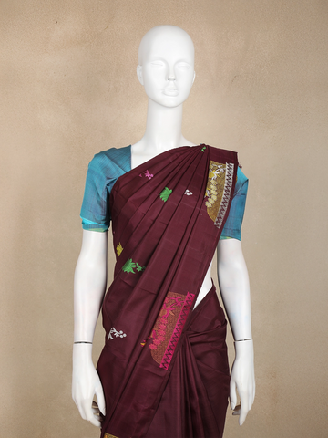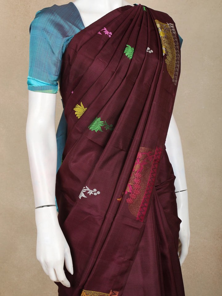 Maroon Floral Motif Woven Kanchipuram Silk Saree