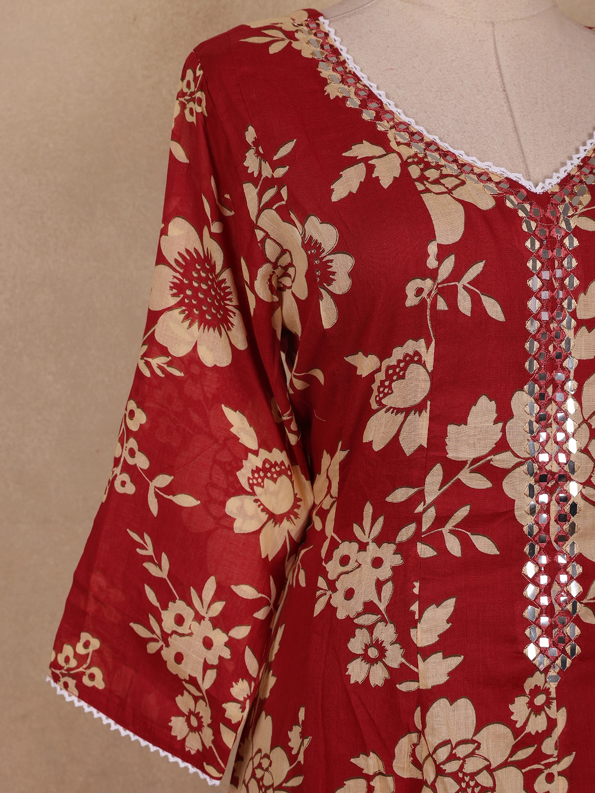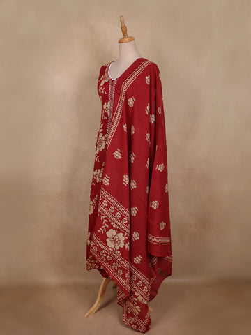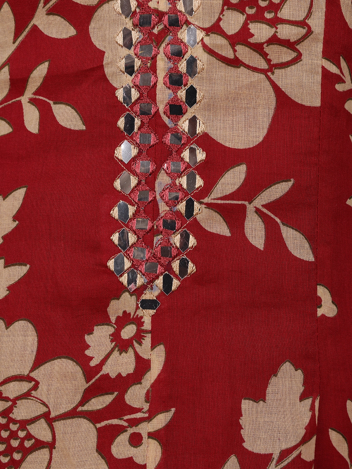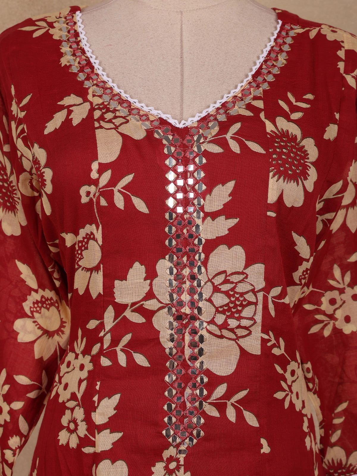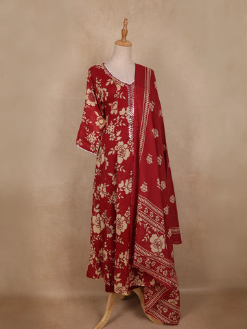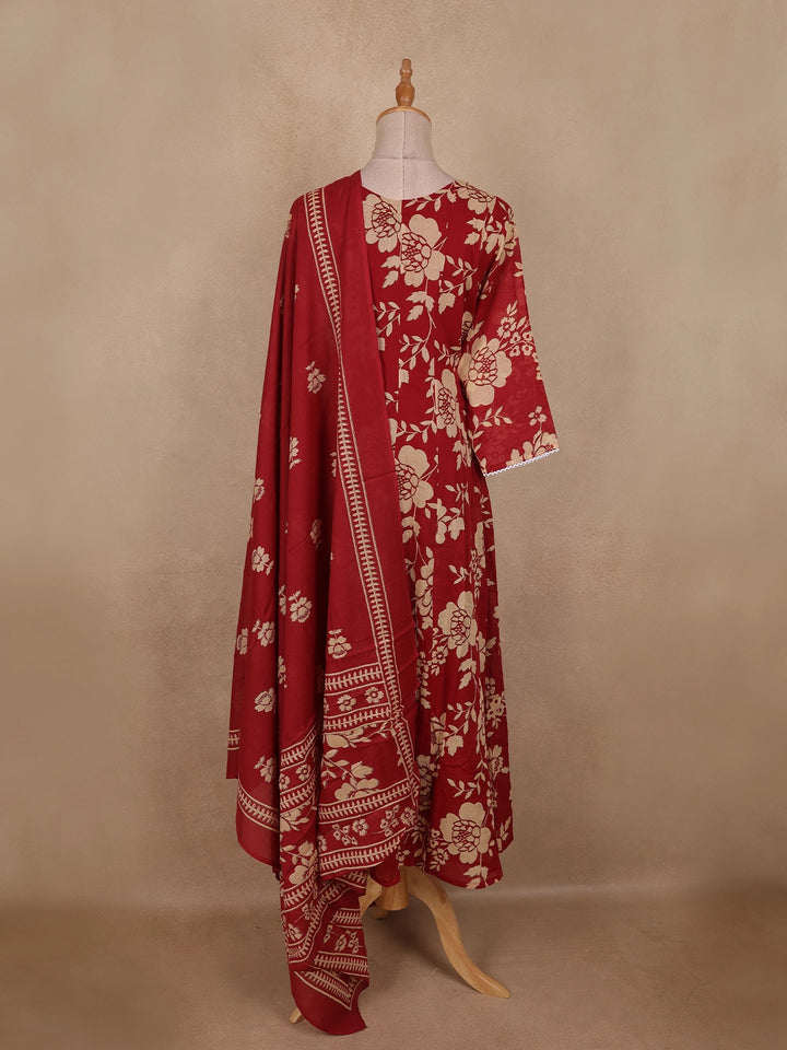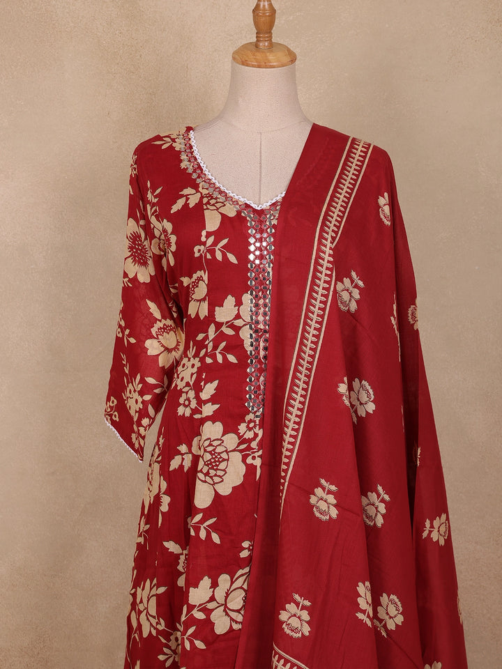 Maroon Floral Printed Design Cotton Anarkali Salwar Suit