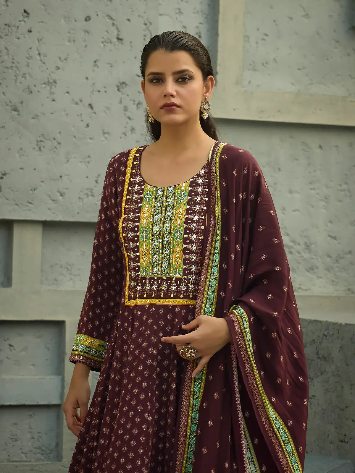 Exude classic charm and cultural elegance with this Maroon Floral Printed Salwar Suit, thoughtfully crafted in soft synthetic fabric for all-day comfort. The deep maroon base is enhanced with intricate floral and ethnic prints in hues of mustard, olive green, turquoise, and white, making it an ideal outfit for casual occasions and everyday wear.