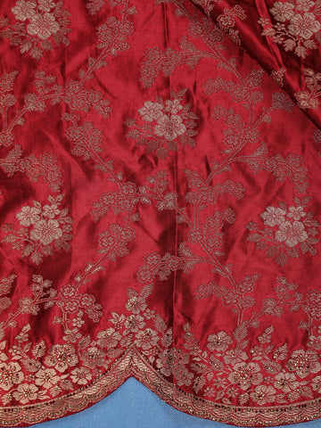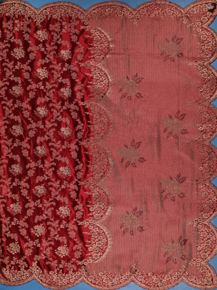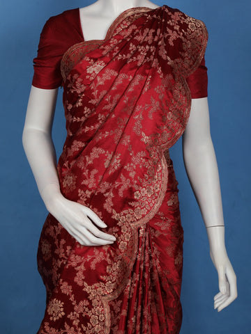 Maroon Floral Woven Banarasi Silk Saree With Scallop Border