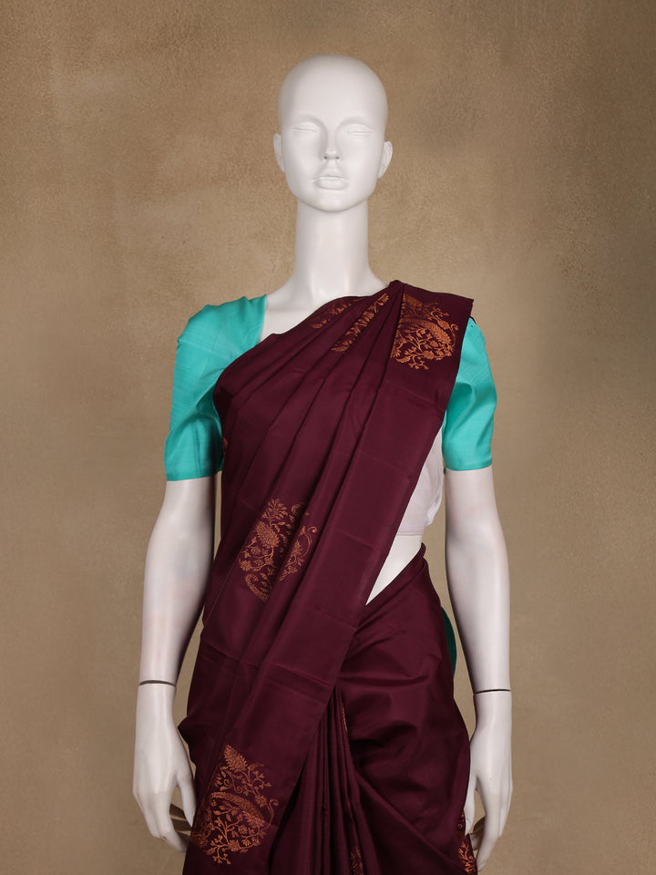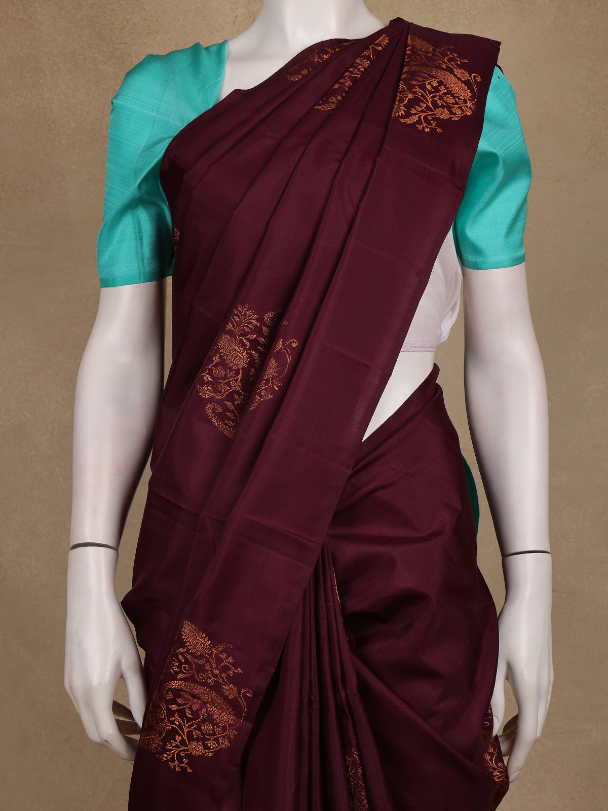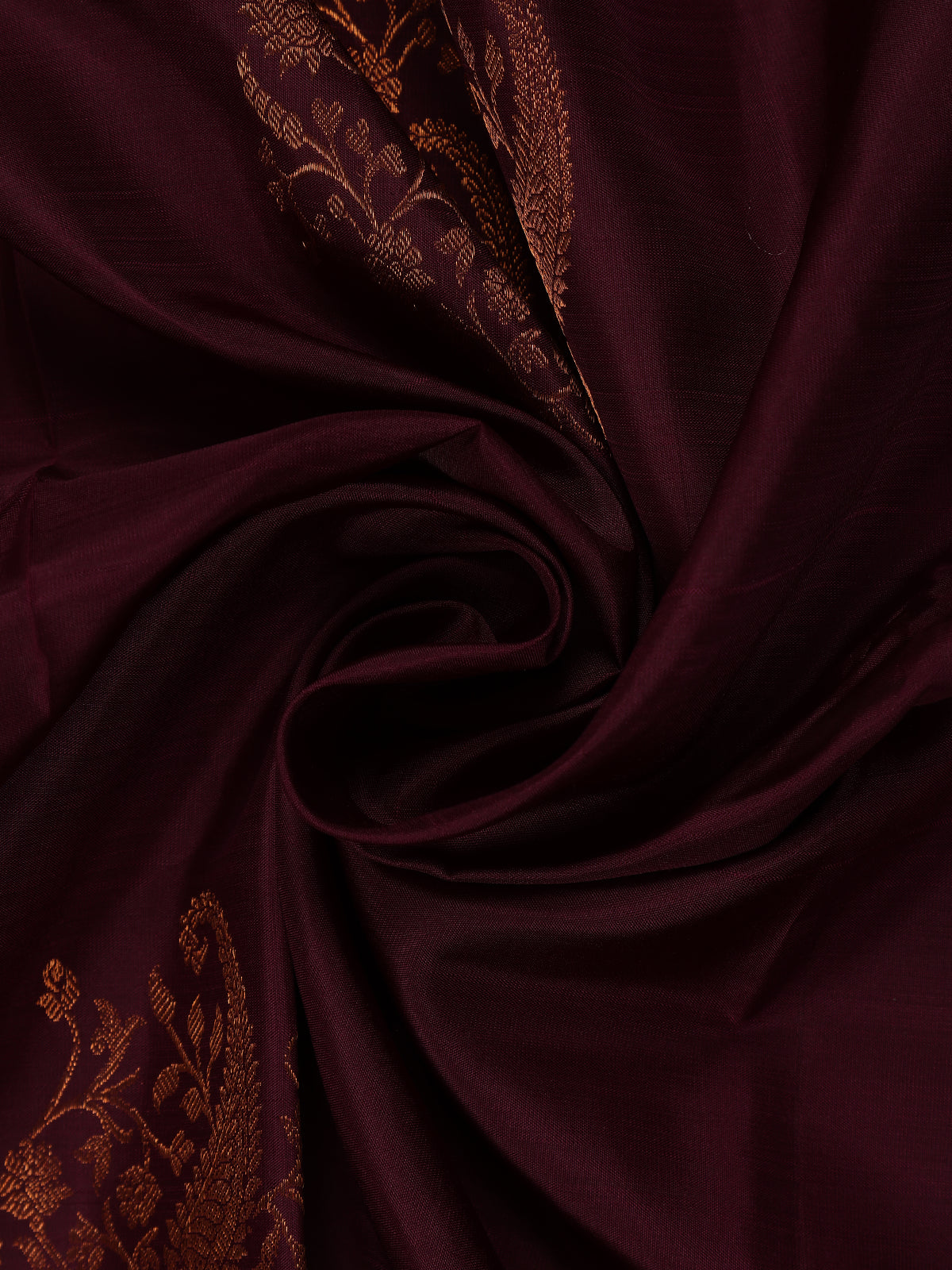 Maroon Floral Woven Design Kanchipuram Silk Saree