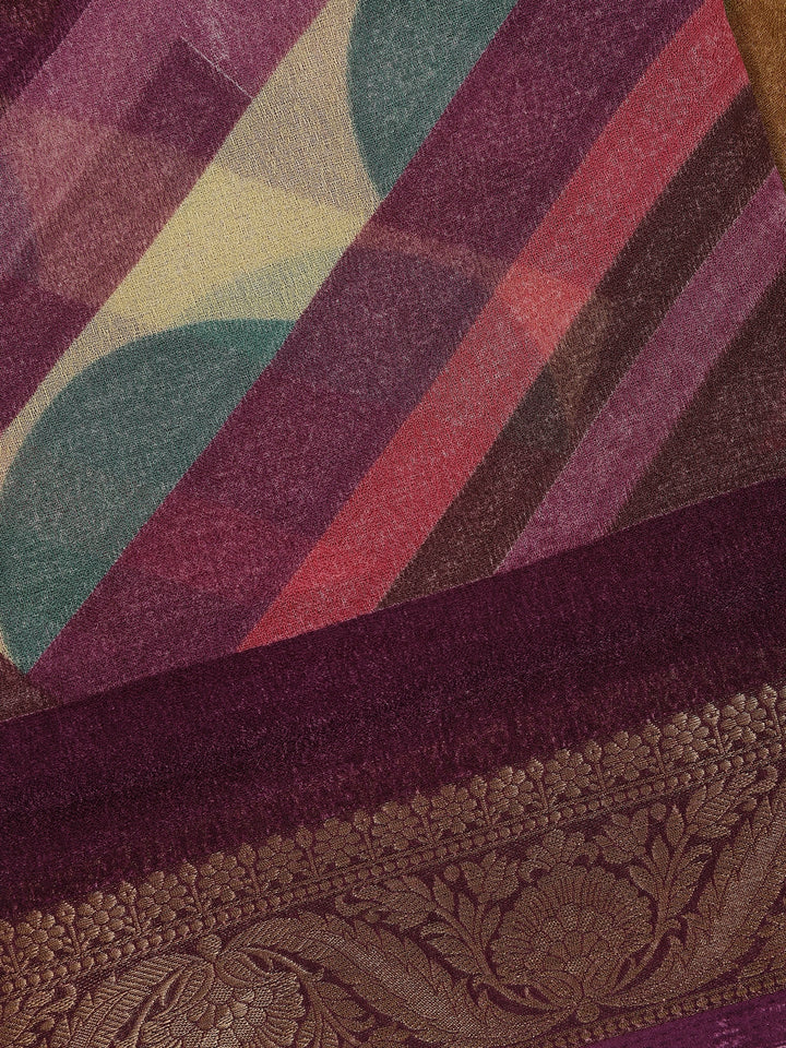 Elegance meets contemporary charm in this Maroon Geometric Design Linen Cotton Saree. Tailored from a lightweight linen-cotton fabric, this saree offers exceptional comfort and a refined texture perfect for day-long wear.