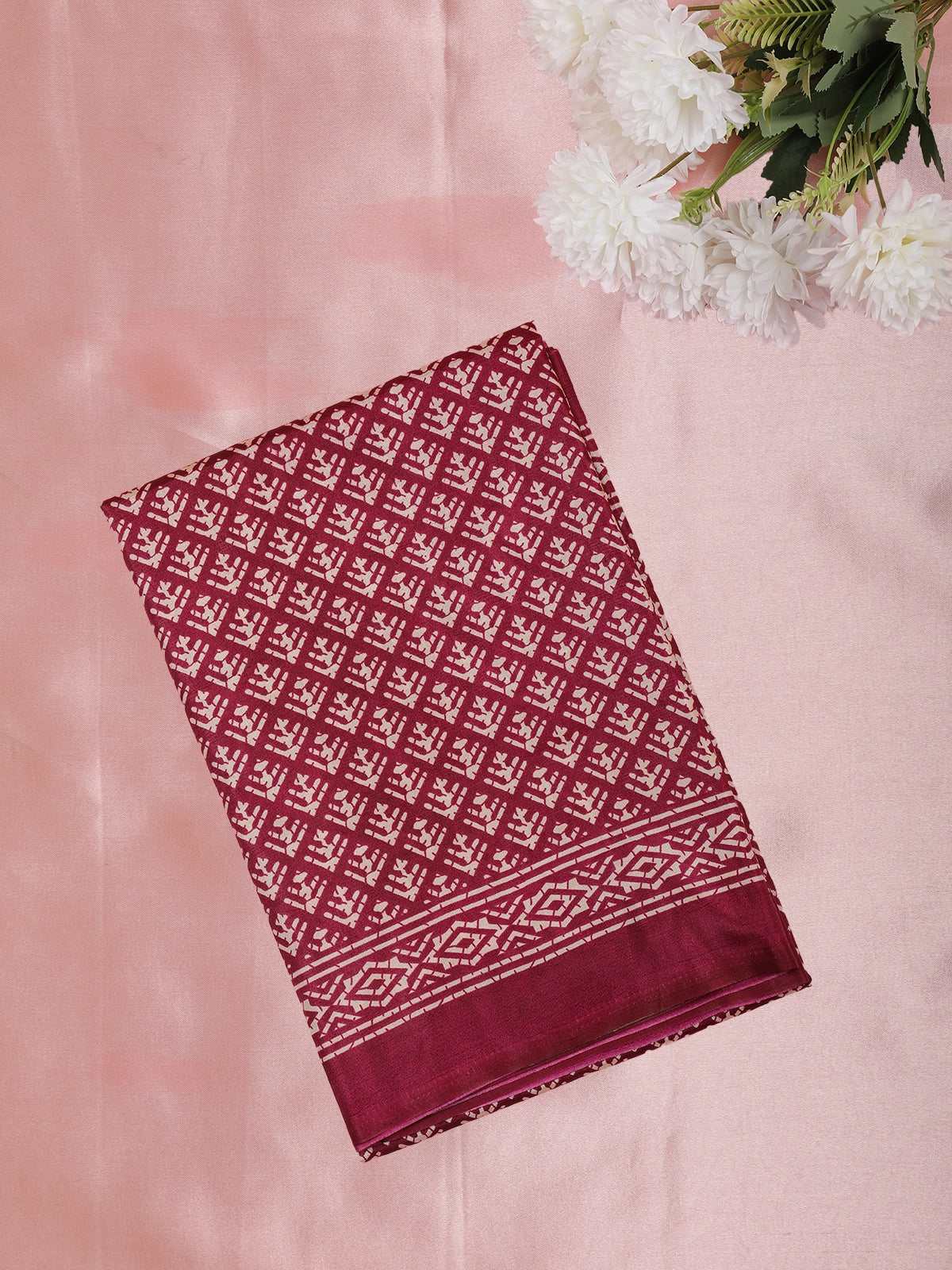 Maroon Geometric Printed Design Mixed Silk Cotton Fancy Saree