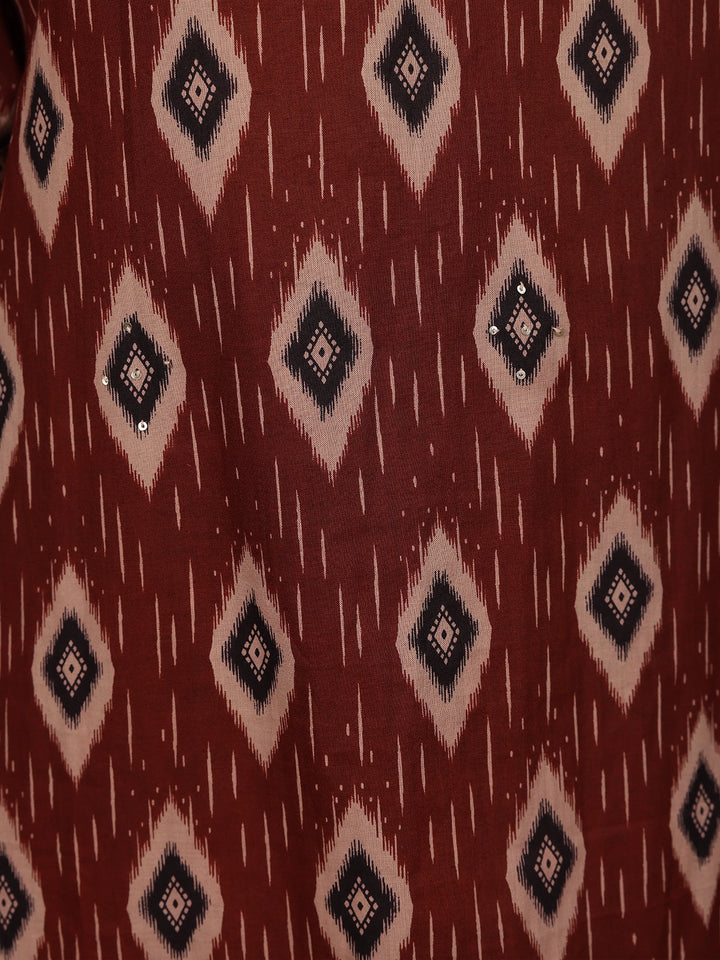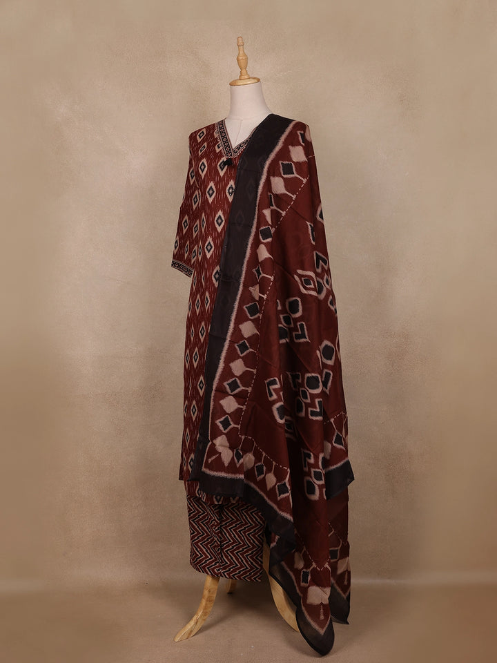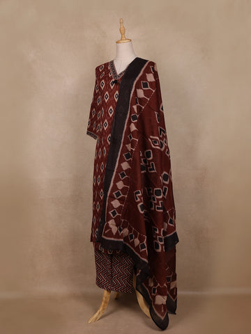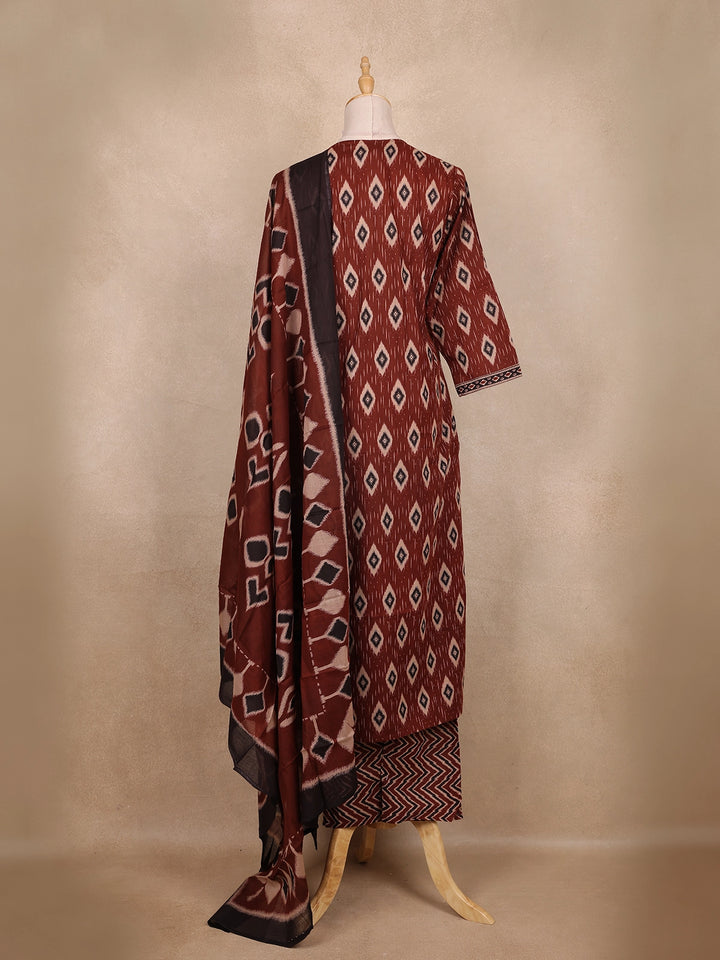 Maroon Ikat Printed Cotton Salwar Suit with Dupatta