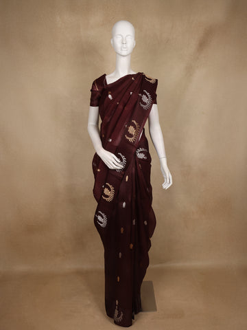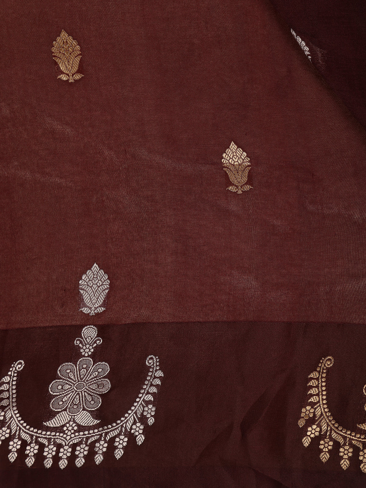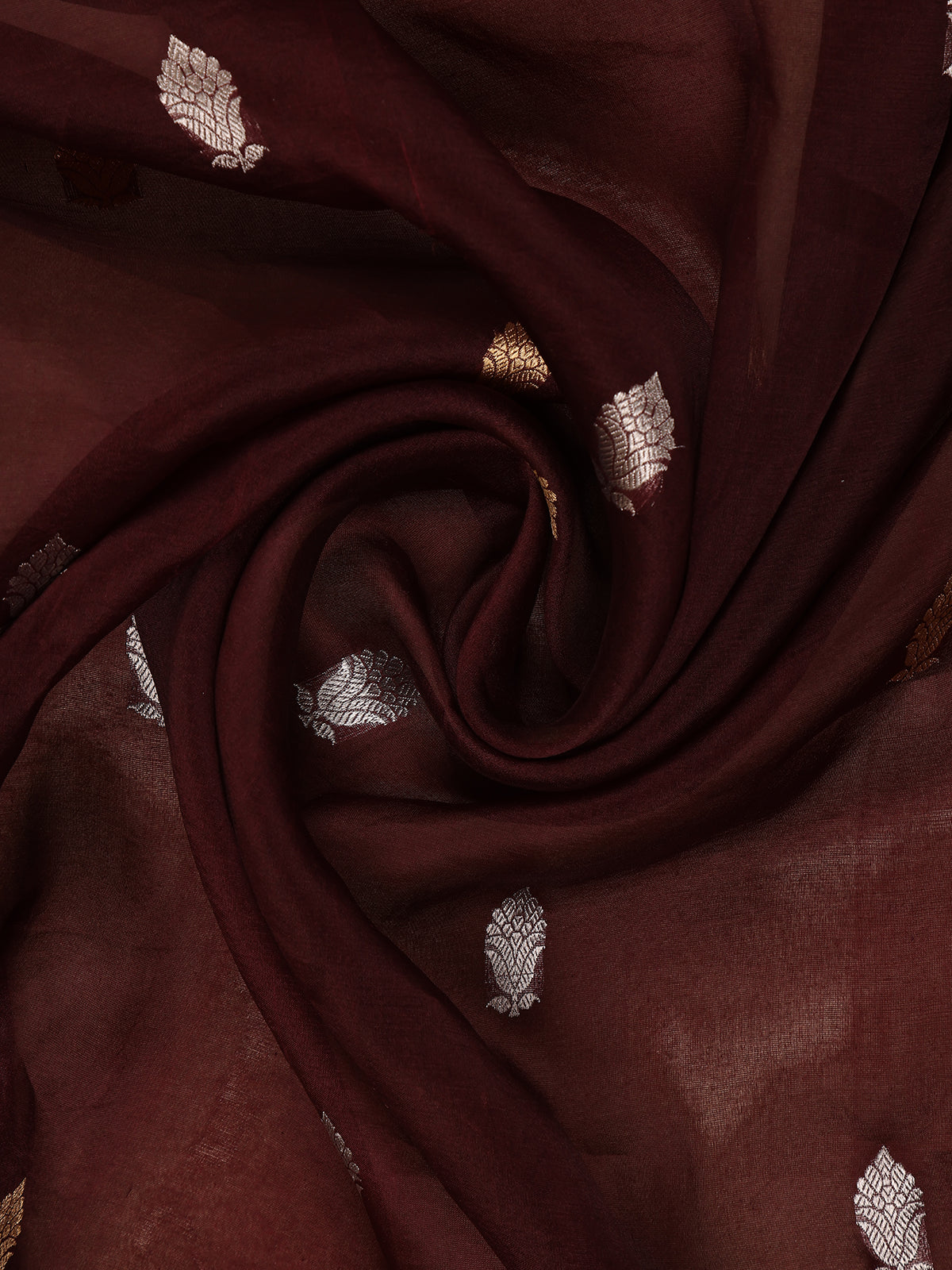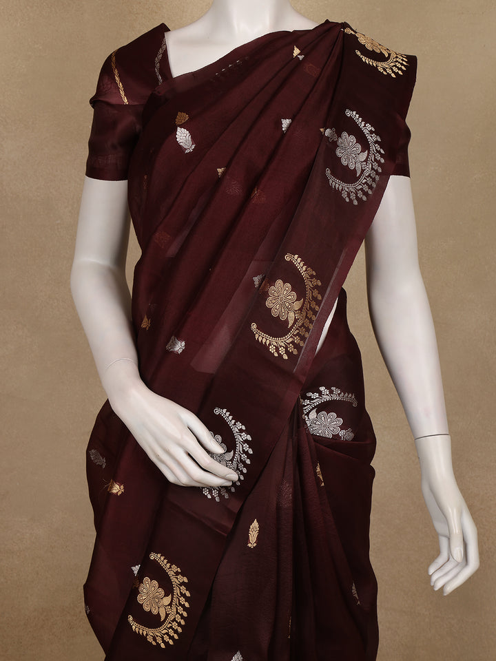 Maroon Paisley Butta Woven Design Banarasi Silk Saree