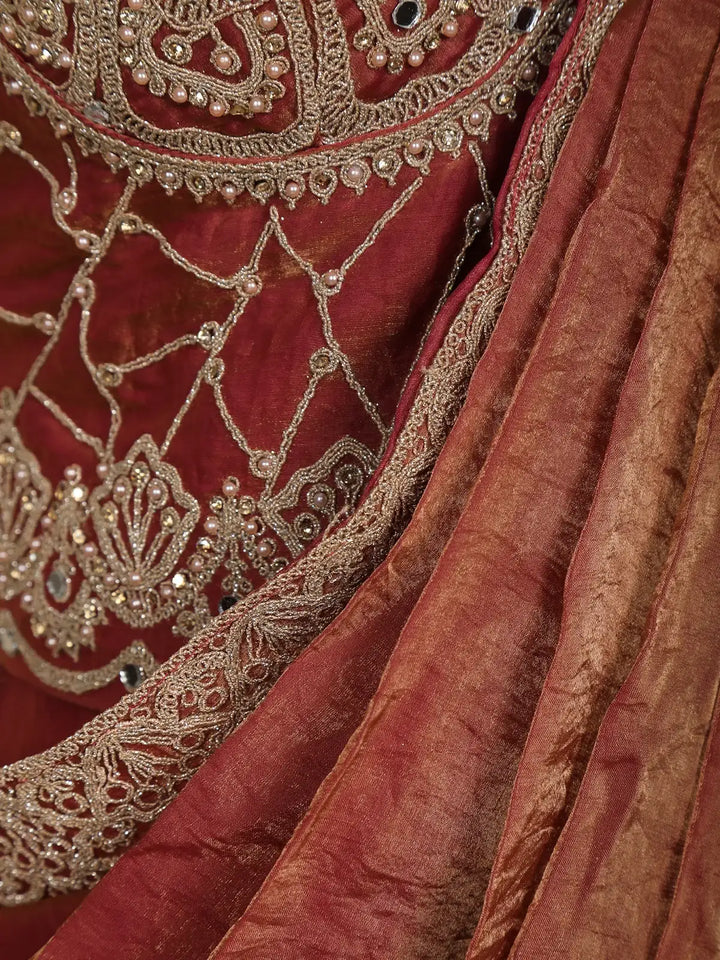 Drape yourself in contemporary elegance with this Maroon Ready-to-Wear Semi Organza Saree, designed for effortless charm and sophistication. Crafted in lightweight semi organza, the saree offers a graceful fall with a subtle sheen, perfect for evening occasions. Its solid maroon base is elevated by a delicately embroidered border that adds just the right amount of sparkle and refinement.