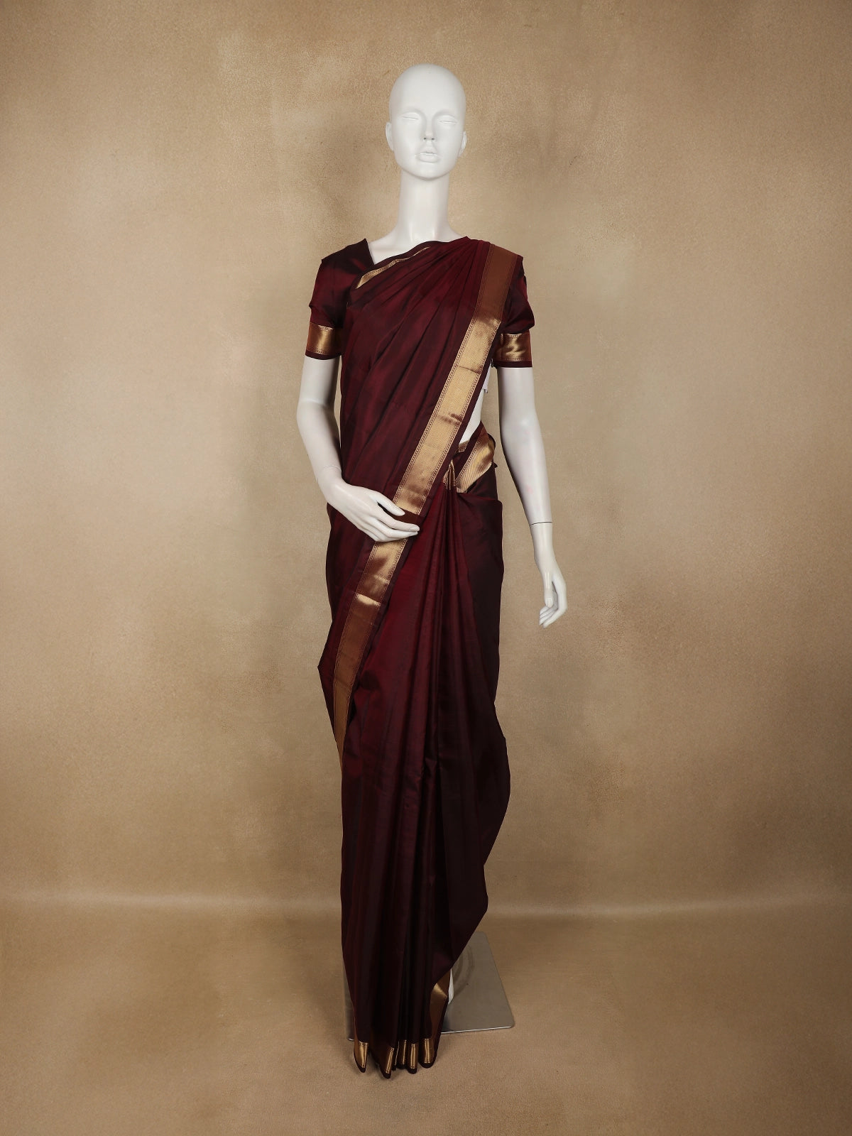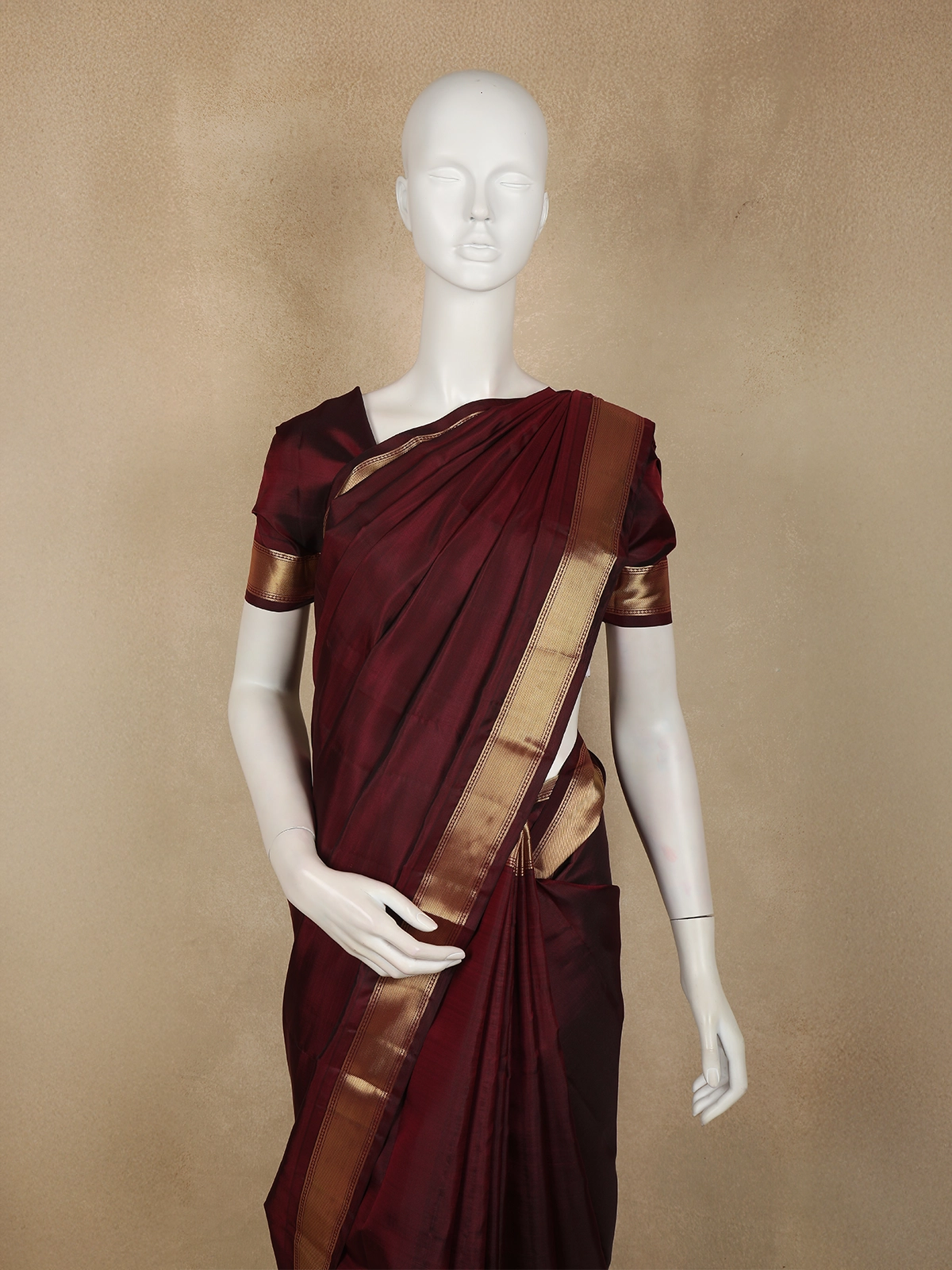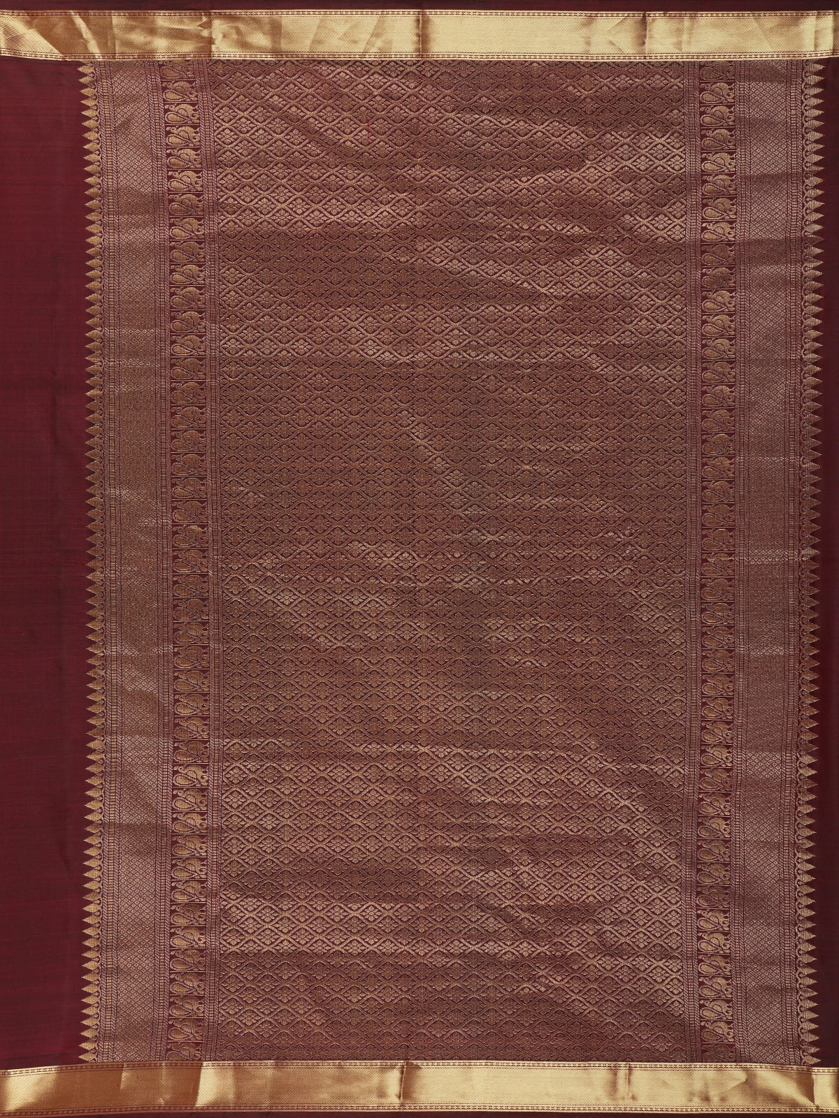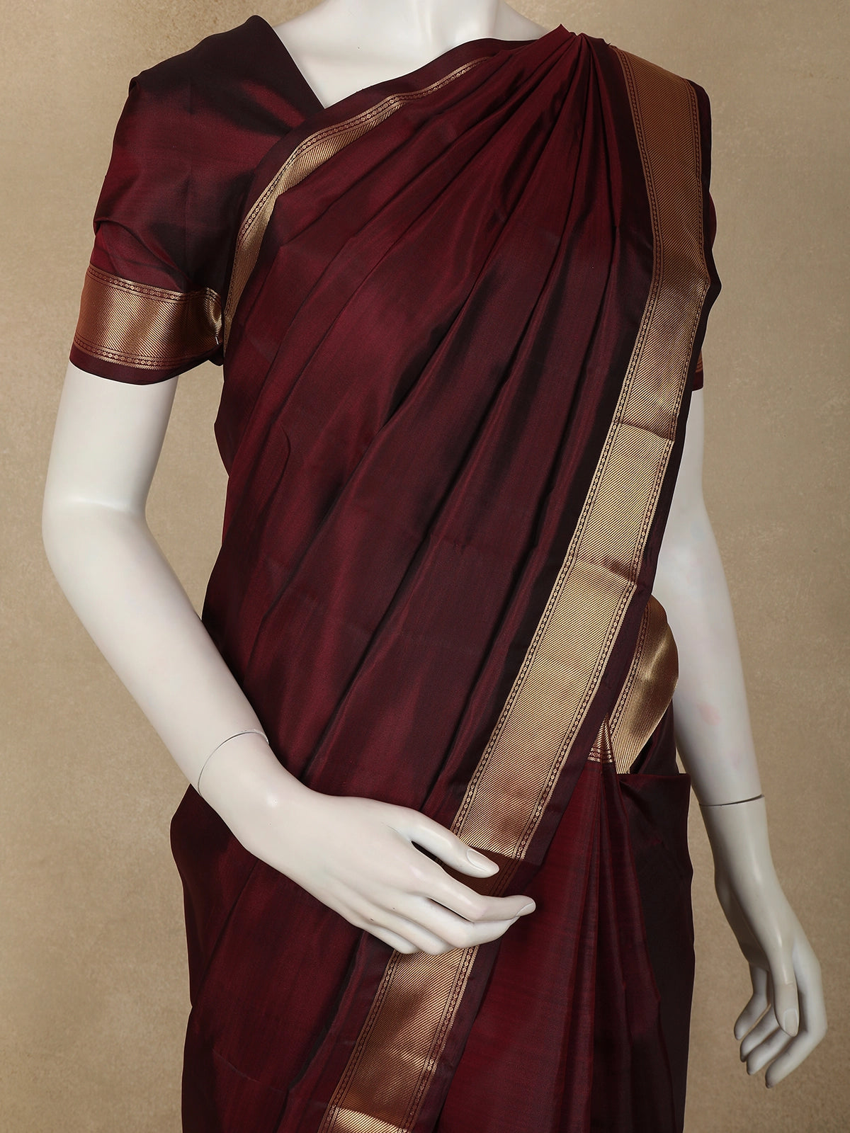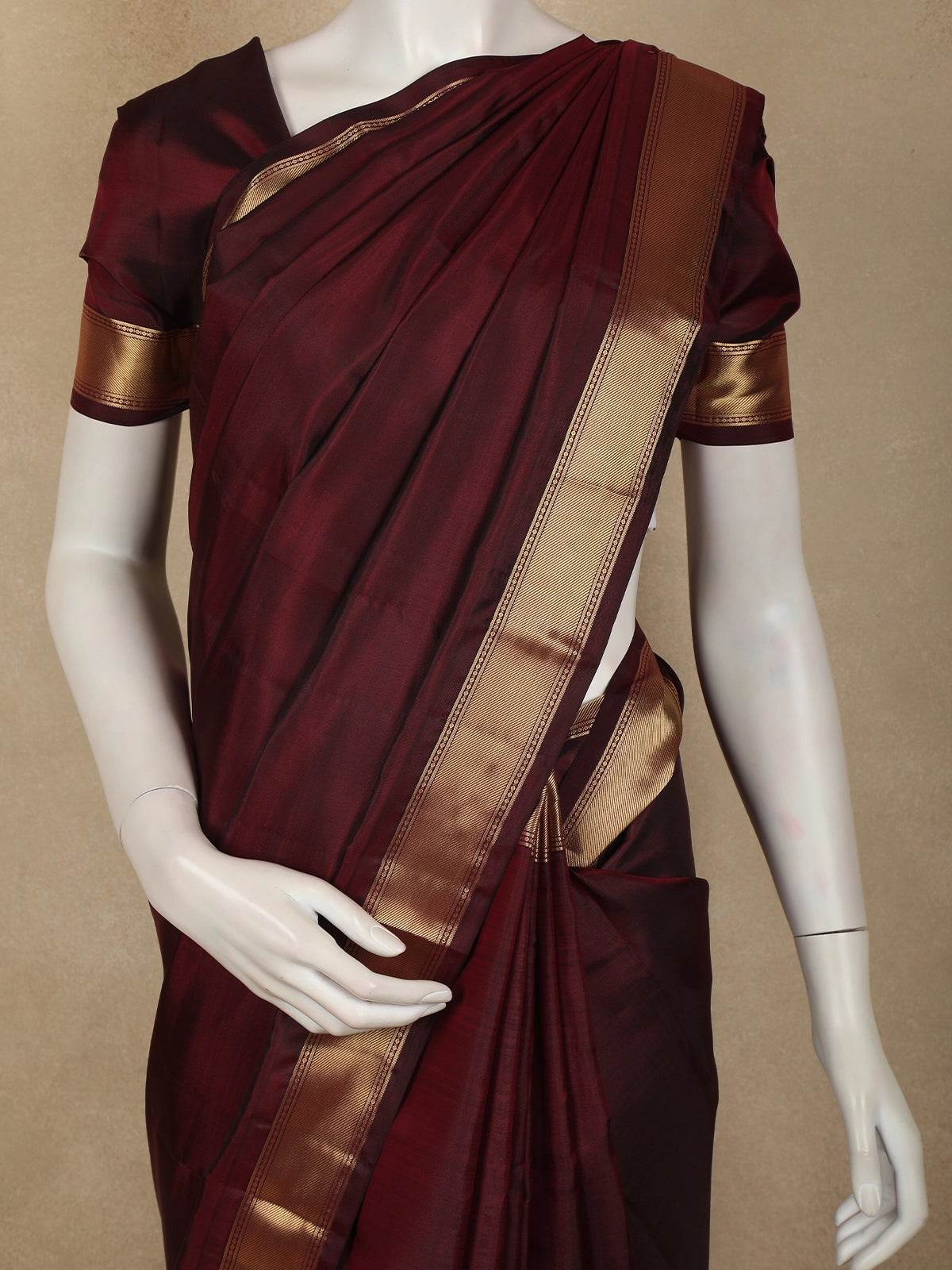 Maroon Solid Woven Design Pure Kanchipuram Silk Saree with Zari Border