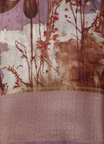Mauve Lavender Floral Printed Design Mixed Cotton Saree