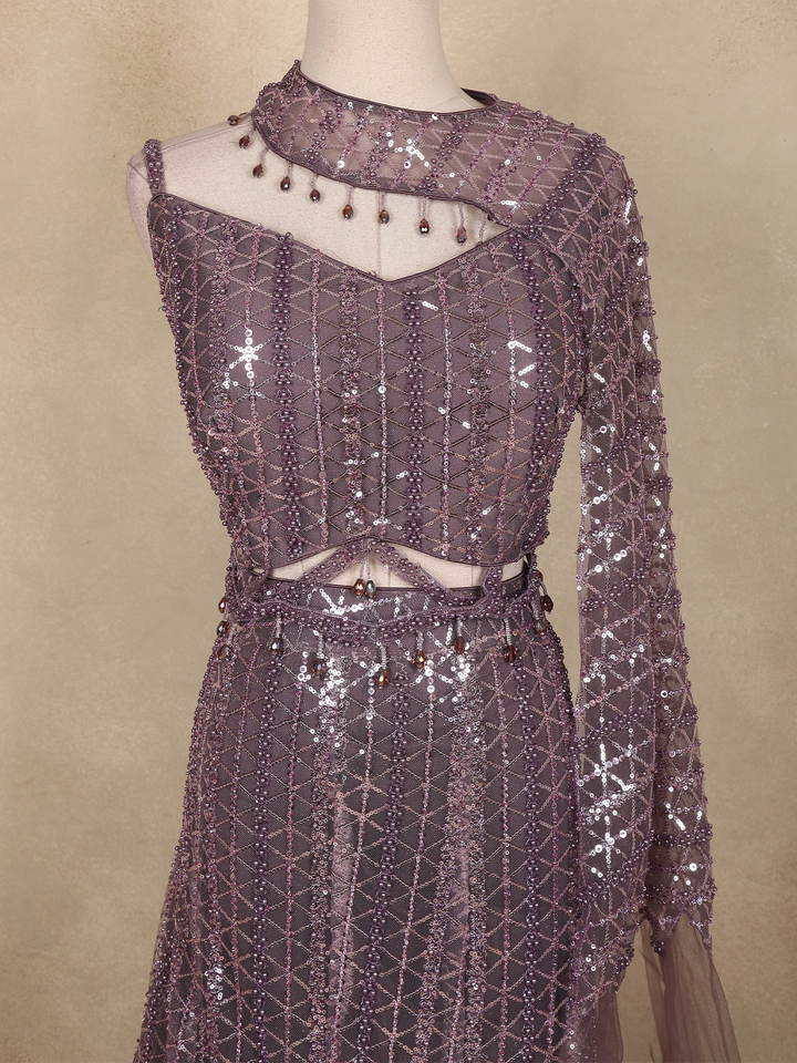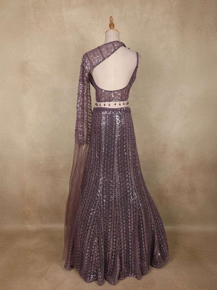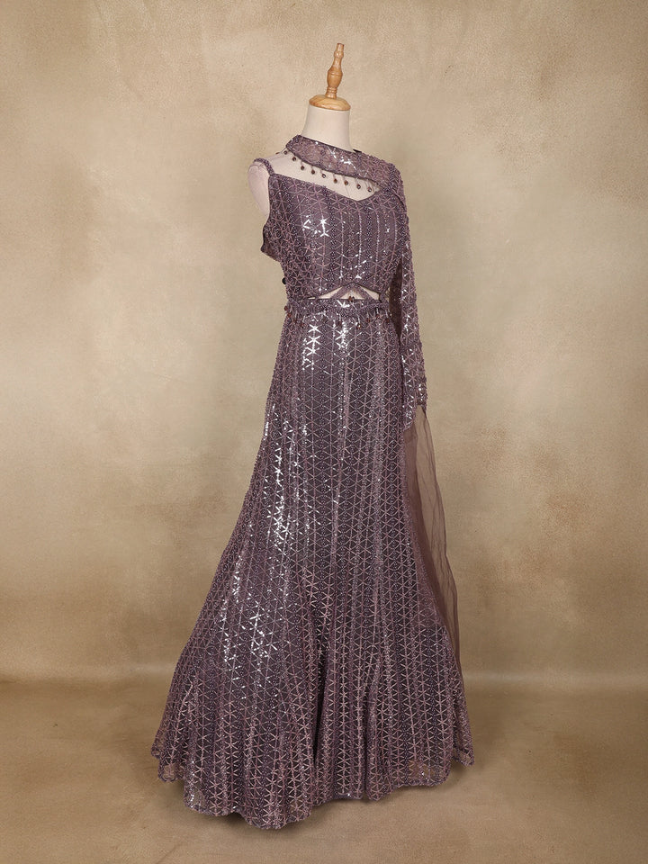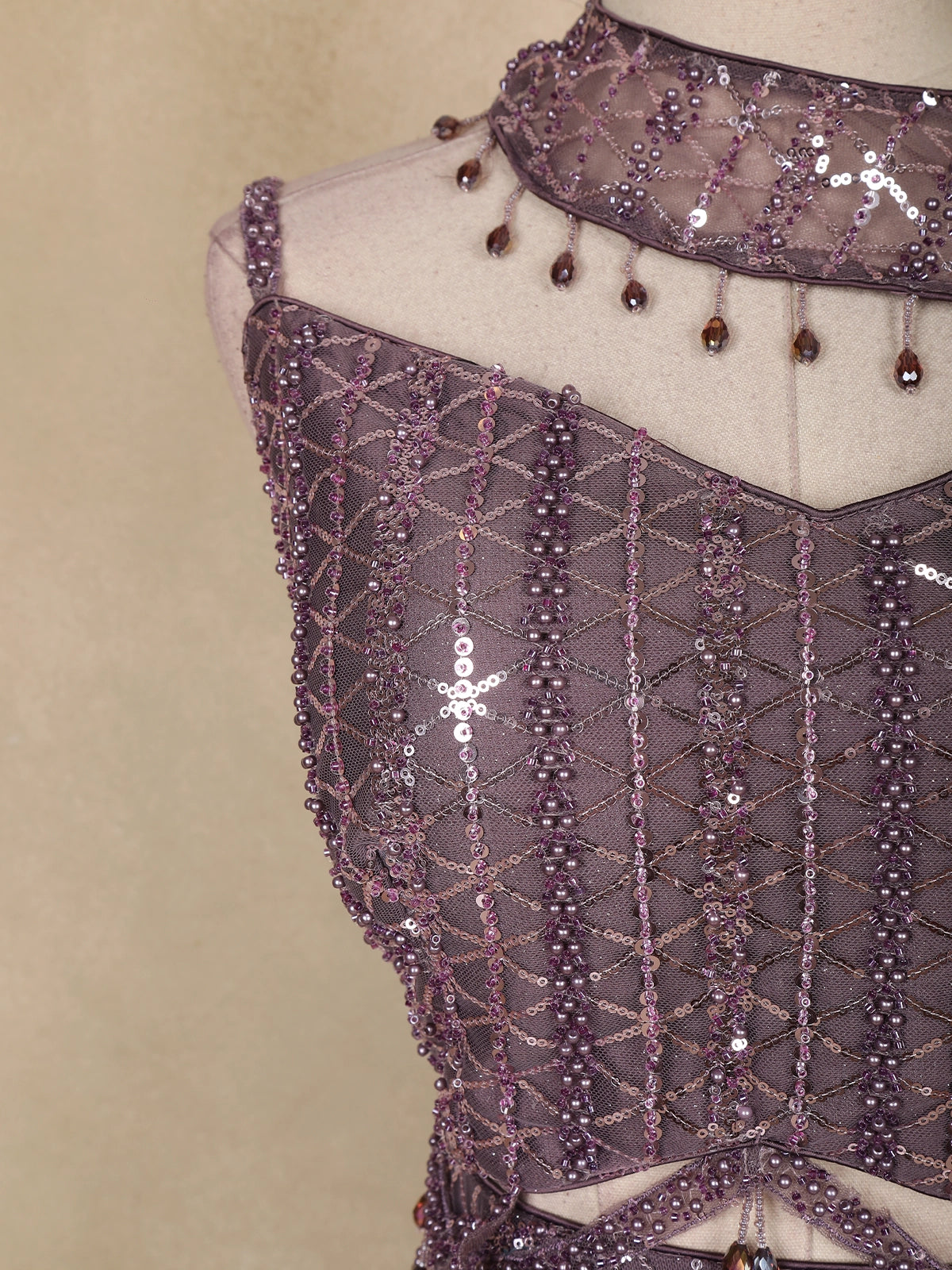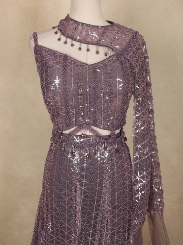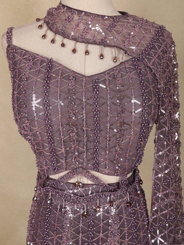 Mauve Sequins and Bead Embroidered Net Mermaid Lehenga Set