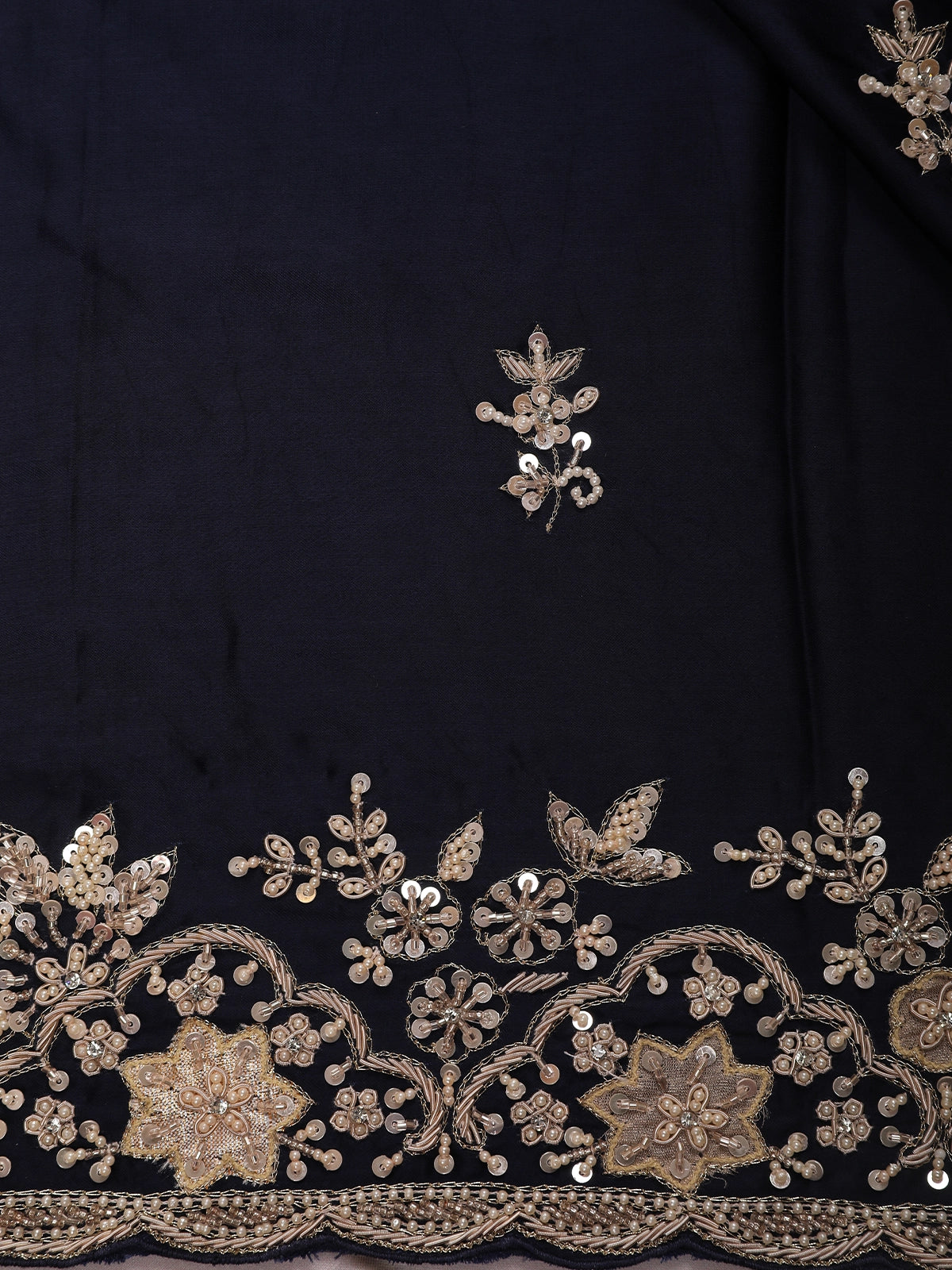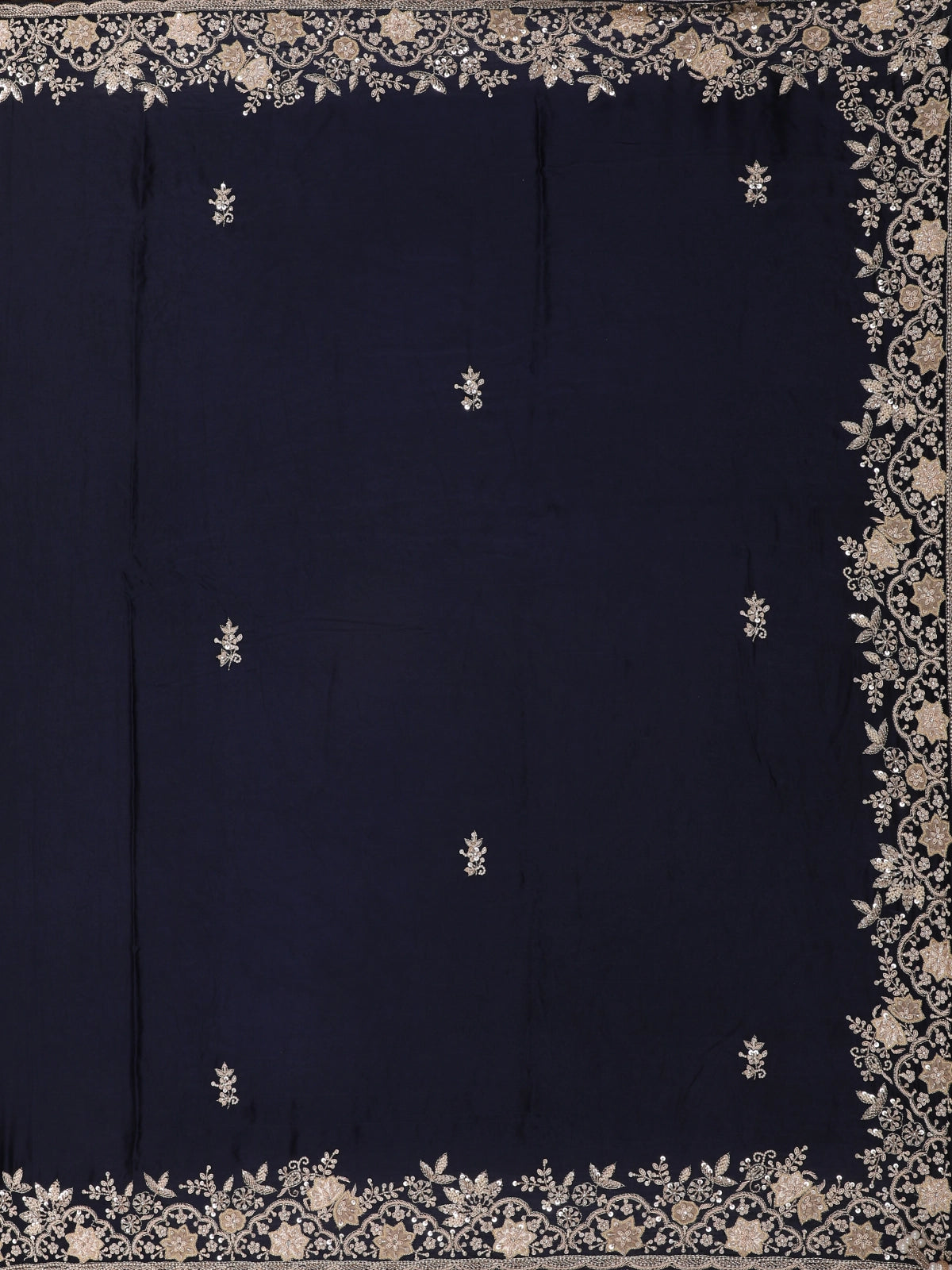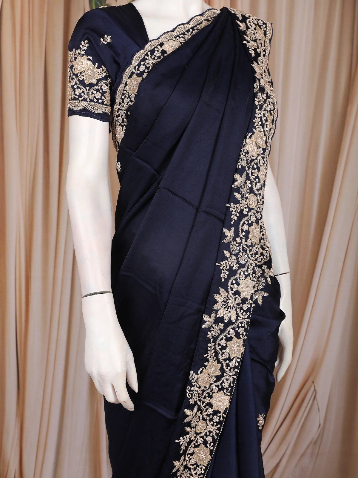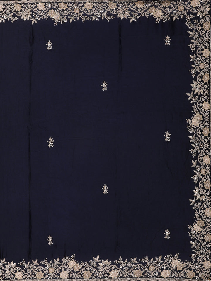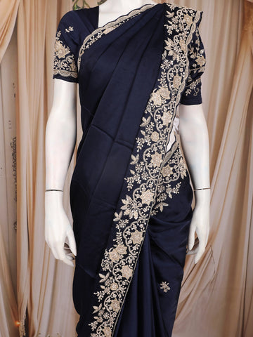 Midnight Blue Floral Sequins Embroidered Satin Saree