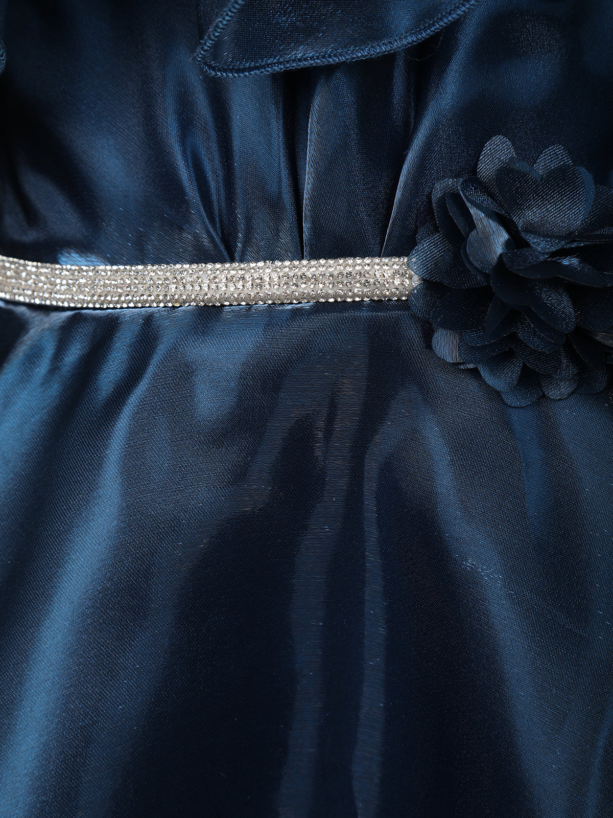 Let your little one shine with sophistication in this stunning Midnight Blue Layered Satin Frock, a perfect blend of modern flair and fairy-tale charm. Crafted from luxurious satin fabric, this frock showcases an asymmetric neckline with elegant multi-layered ruffle detailing, adding a graceful and stylish silhouette.