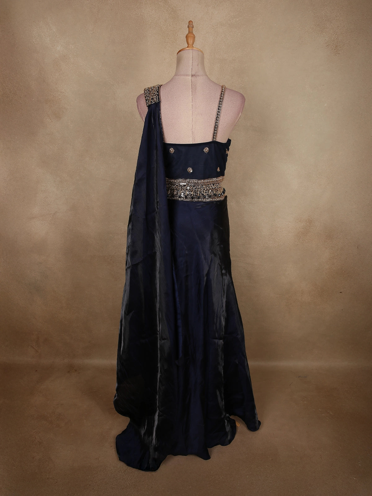 Make a striking statement in this breathtaking Midnight Navy Blue lehenga, crafted in luxurious organza with an effortlessly regal silhouette. The deep navy hue exudes timeless sophistication, beautifully enhanced with heavy sequin and bead embroidery that catches the light with every movement.