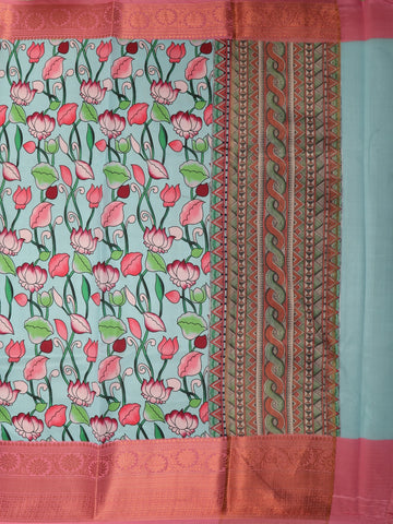 Mint Aqua Blue Floral Woven Design Art Silk Designer Saree