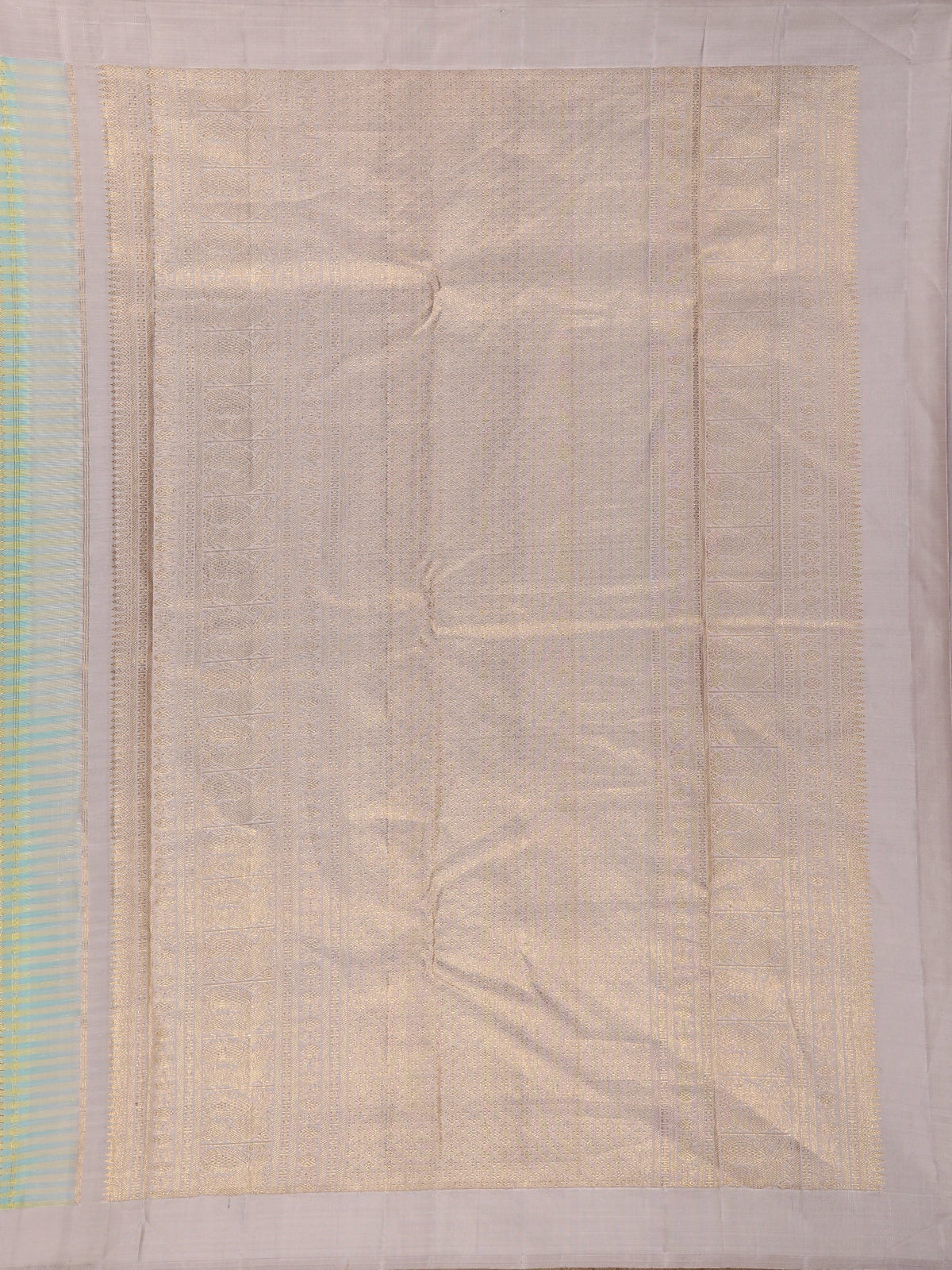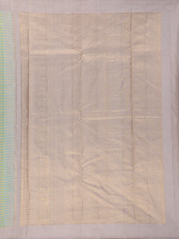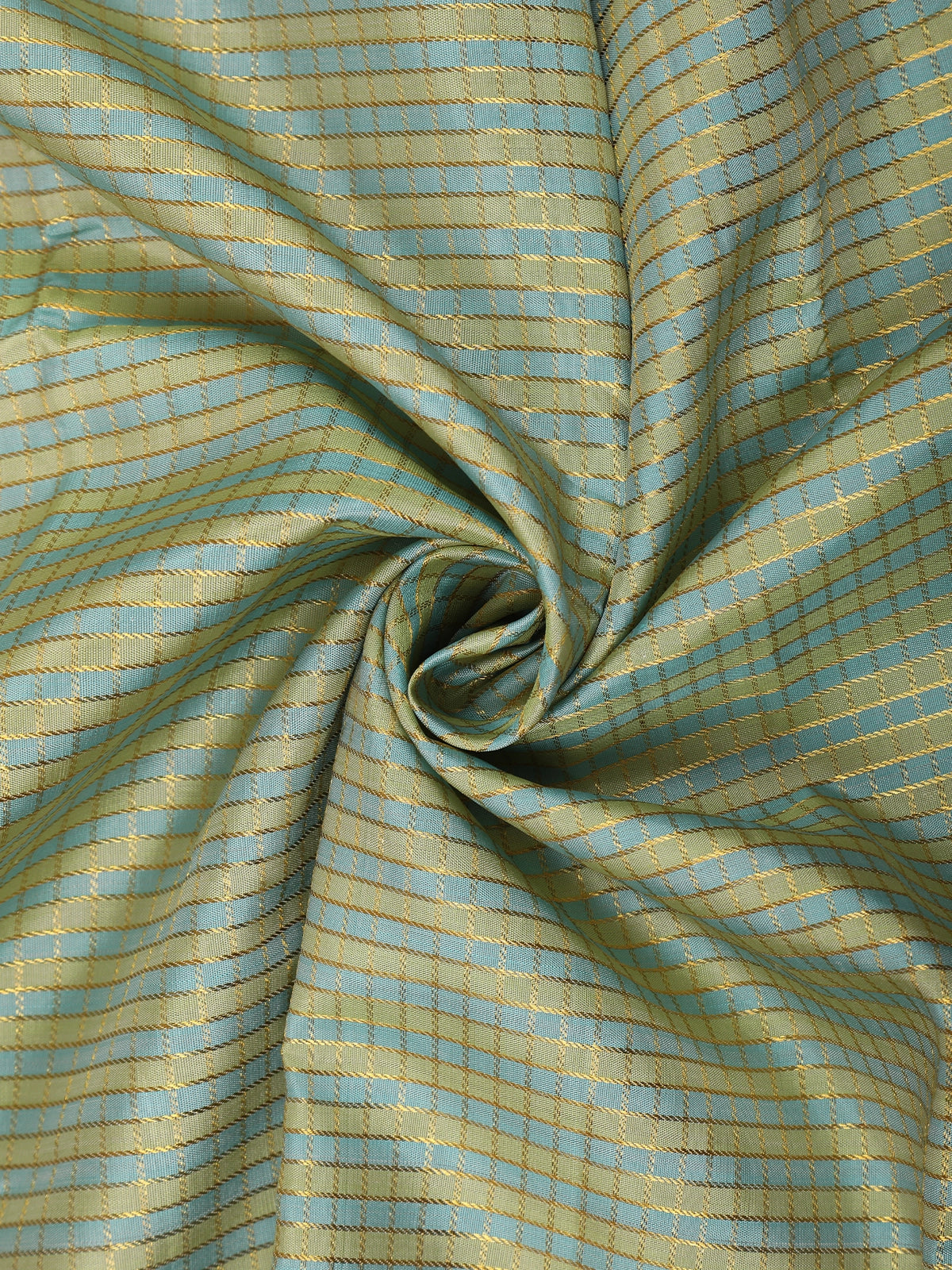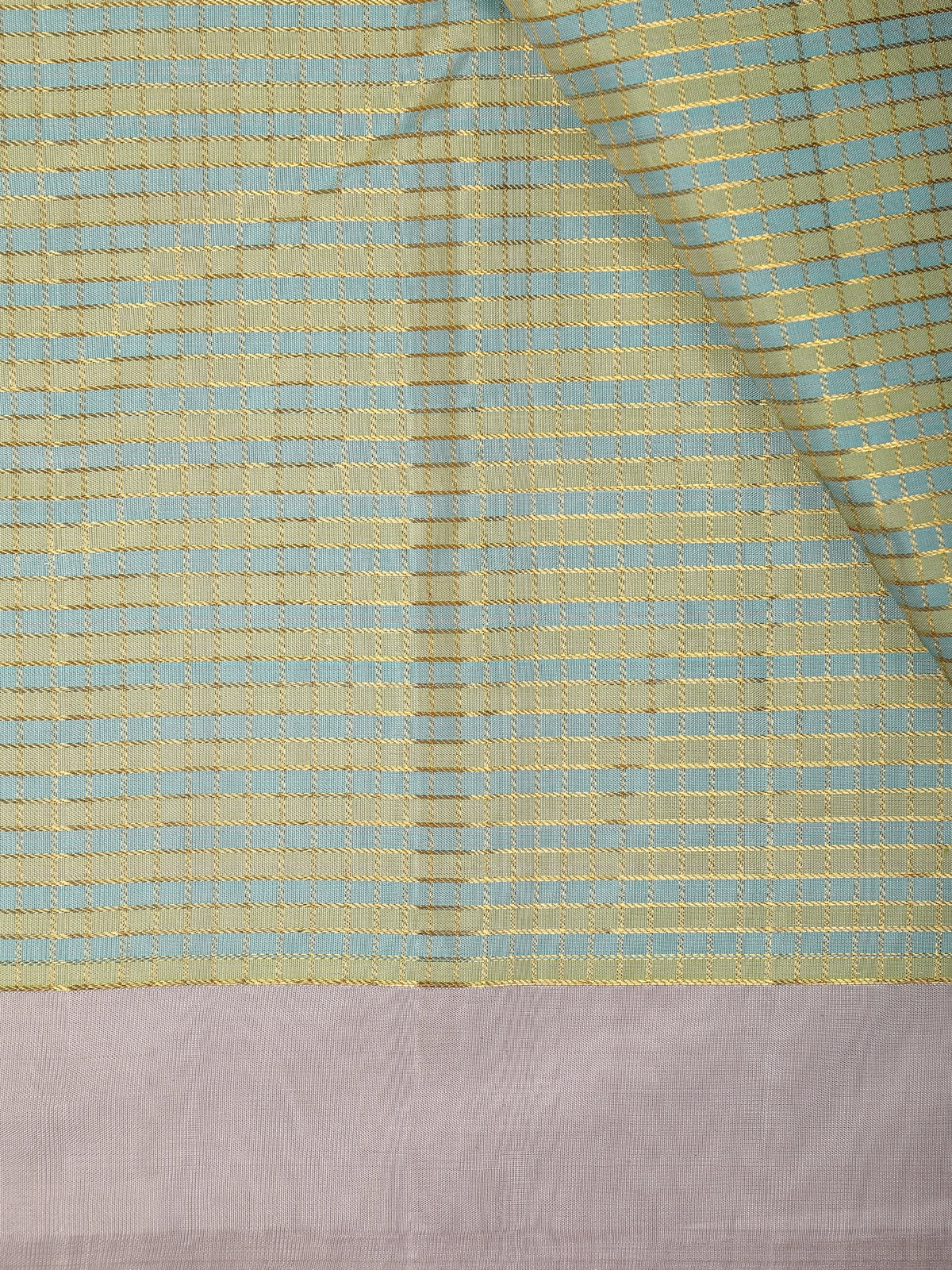 This exquisite Pure Kanchipuram Silk saree is a beautiful blend of classic South Indian craftsmanship and soft contemporary hues. The saree features a refreshing mint green base adorned with traditional checked weaving, meticulously crafted with fine zari lines that lend structure, depth, and timeless appeal to the design. The checks create a graceful rhythm across the body, highlighting the richness of authentic Kanchipuram silk.