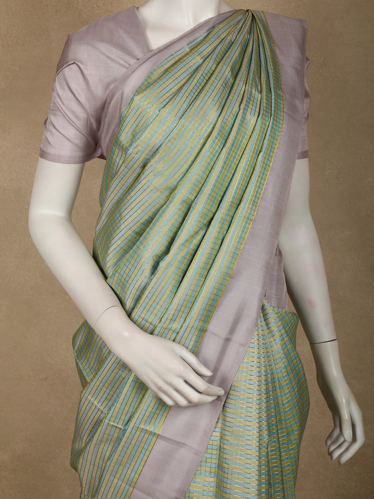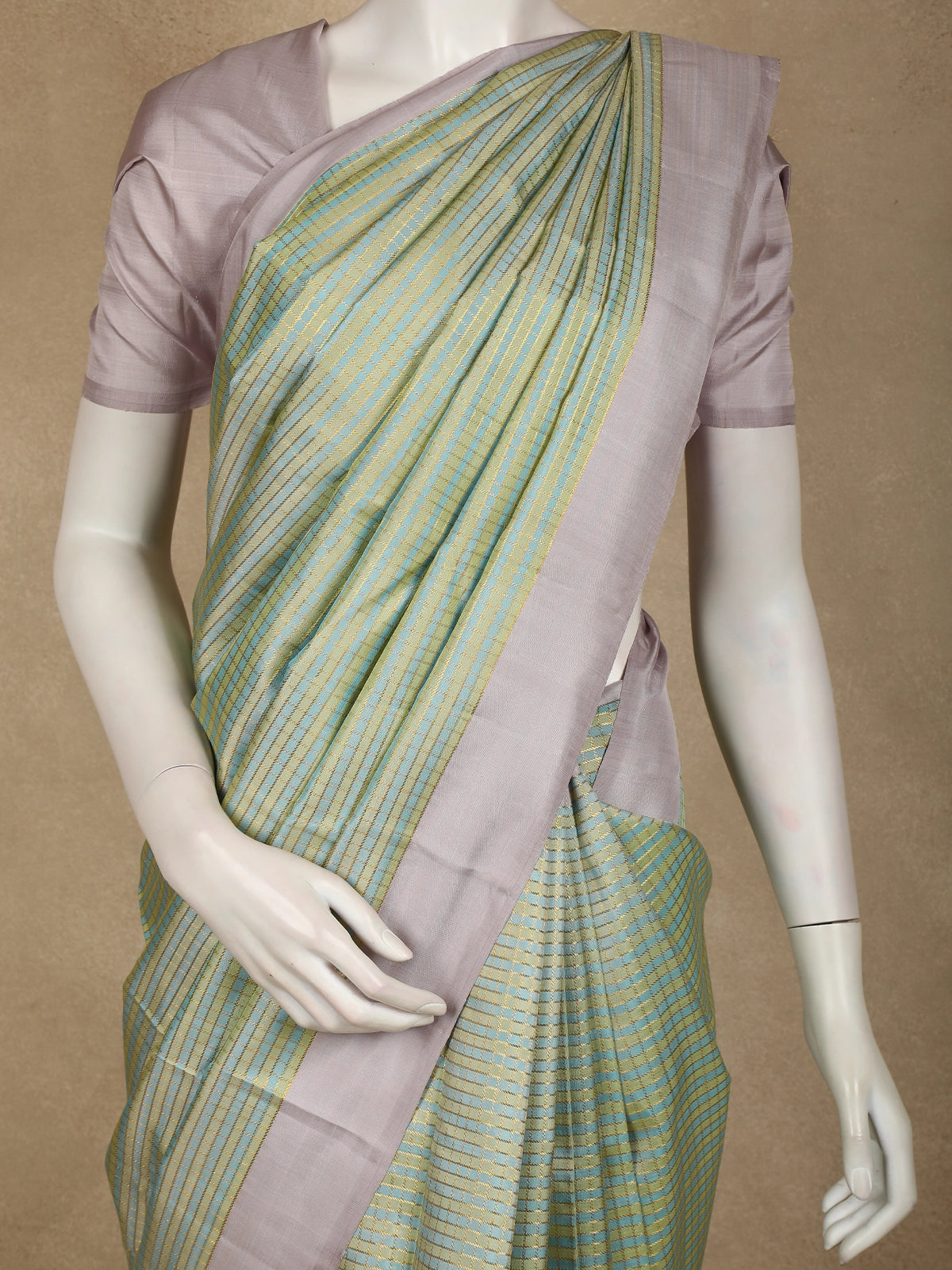 Mint Green Checks Woven Pure Kanchipuram Silk Saree with Pastel Lavender Border