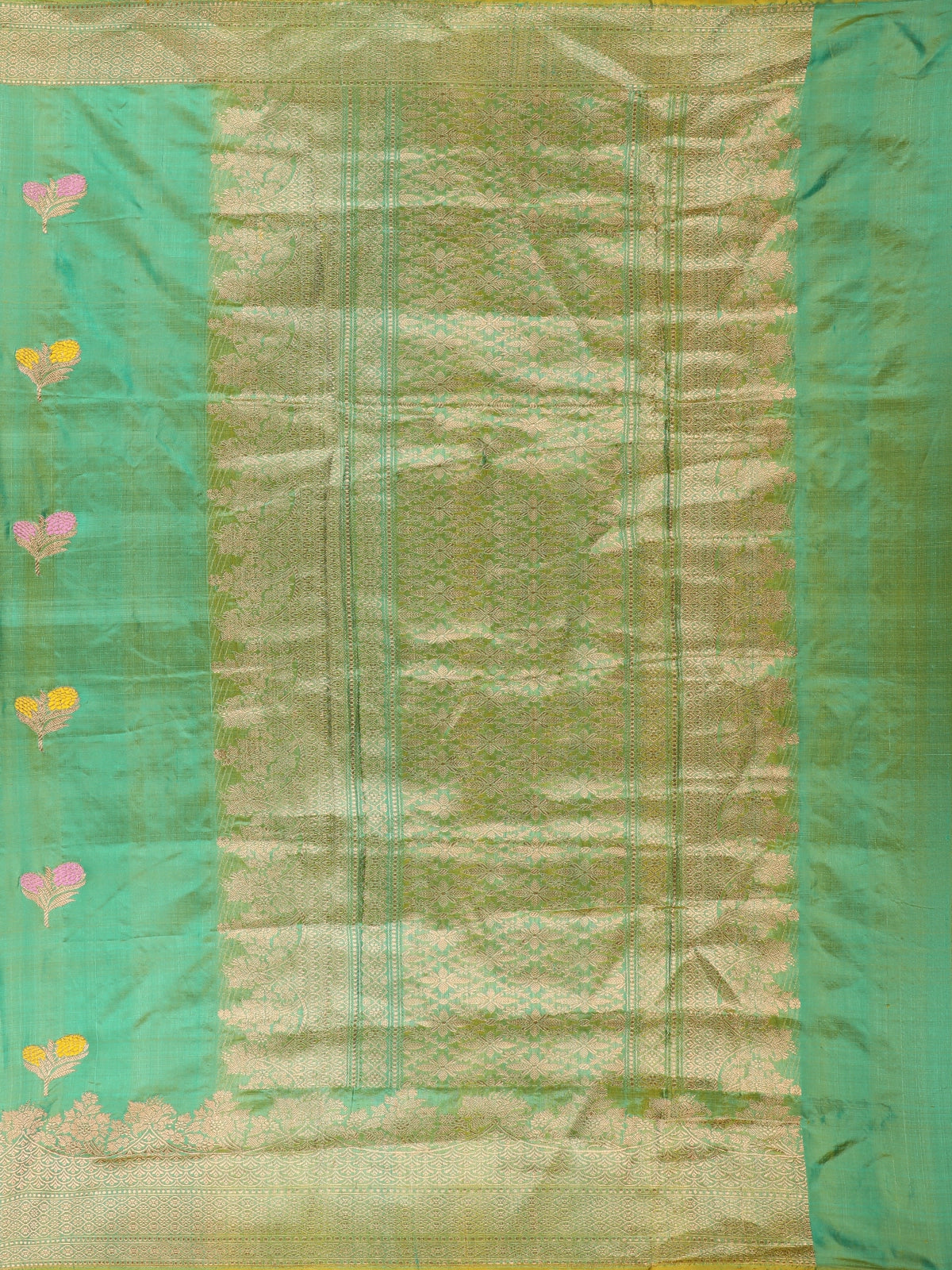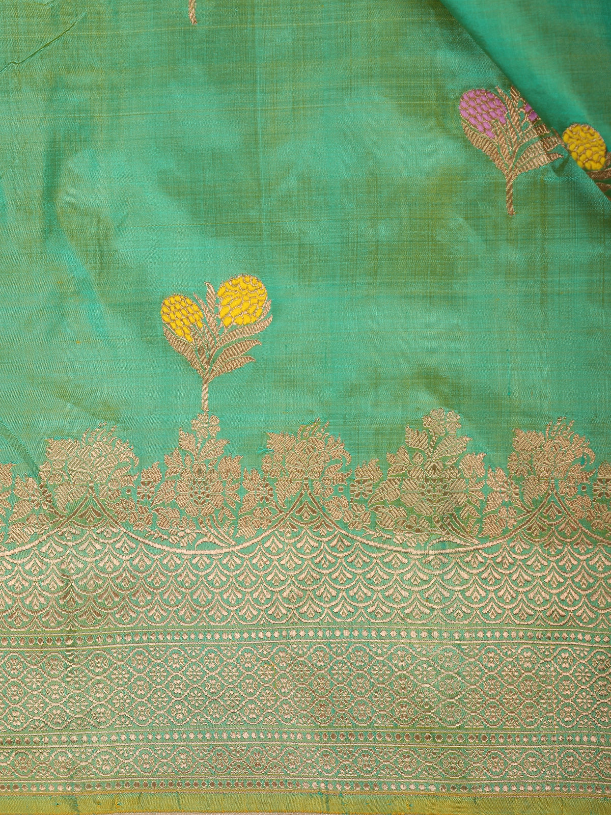 Mint Green Floral Butta Woven Design Pure Banarasi Saree