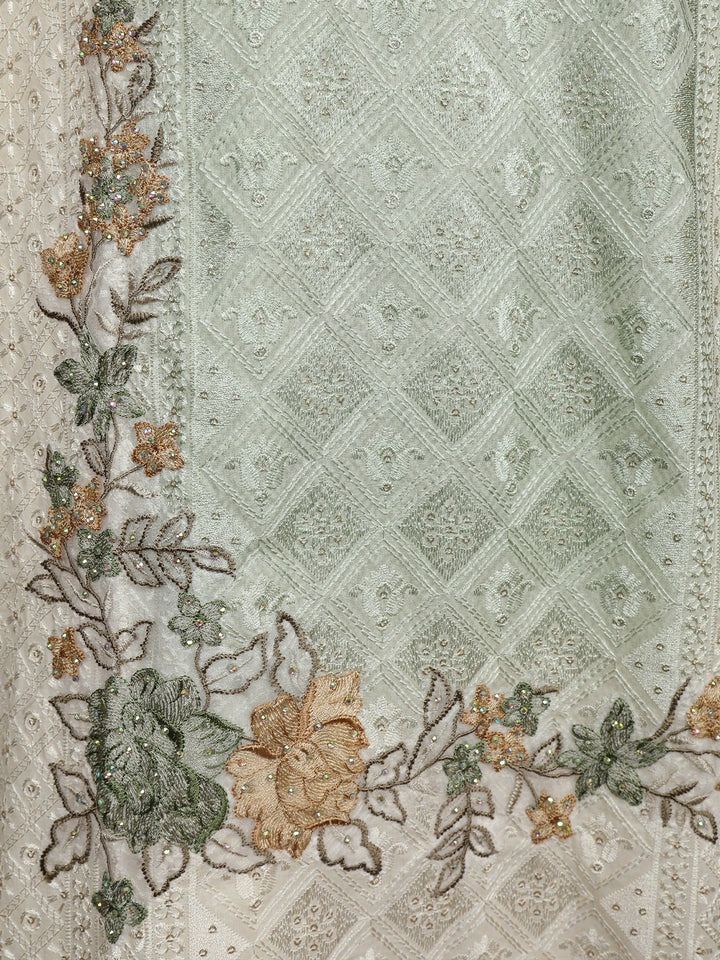 Mint Green Floral Embroidered Design Cotton Salwar Suit with Dupatta