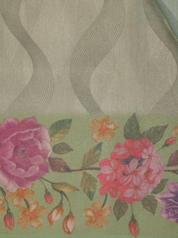 Step into effortless elegance with this Mint Green Floral Printed Semi Tussar Saree, a delightful fusion of traditional charm and modern grace. Crafted from lightweight semi tussar fabric, this saree drapes beautifully while offering a subtle sheen that enhances its festive allure.