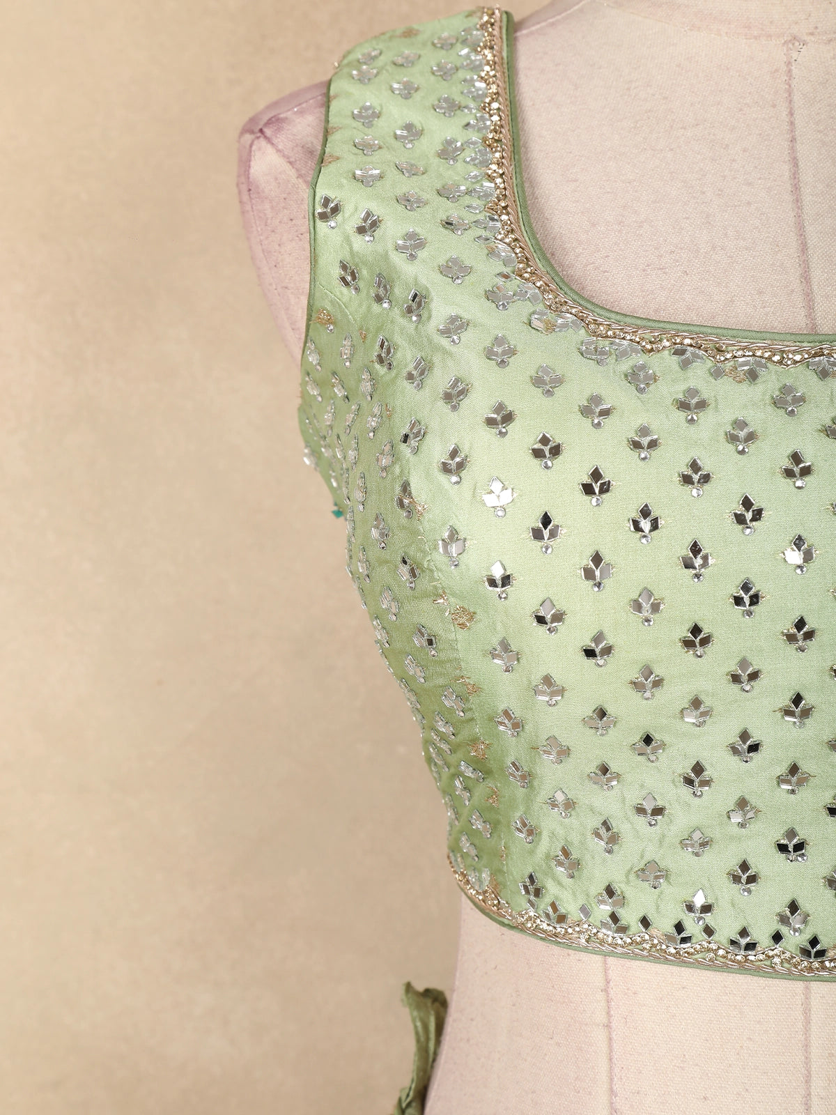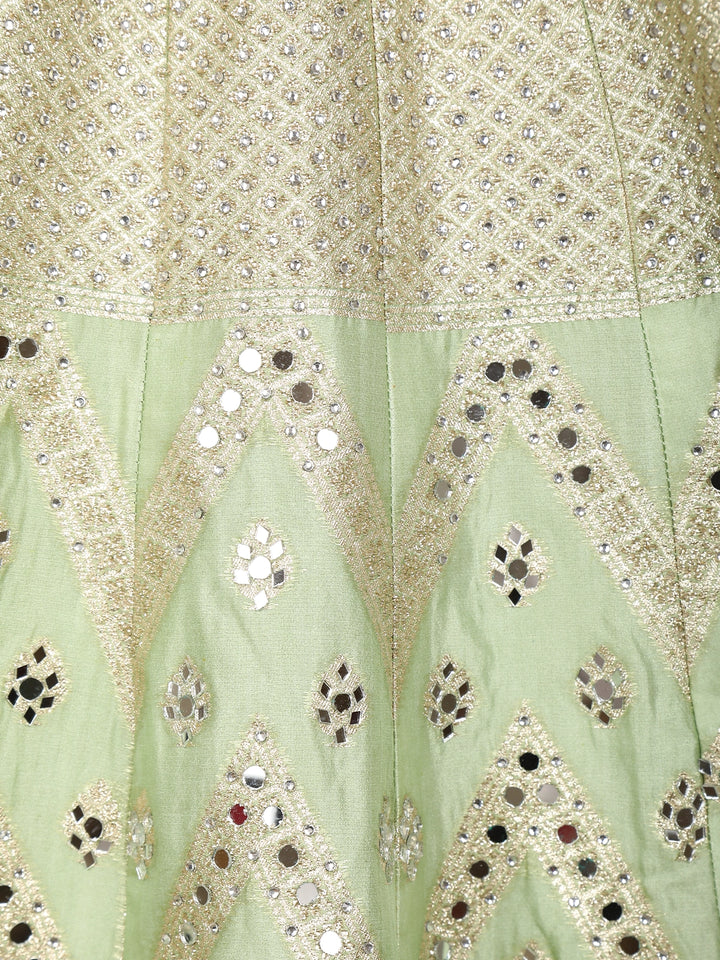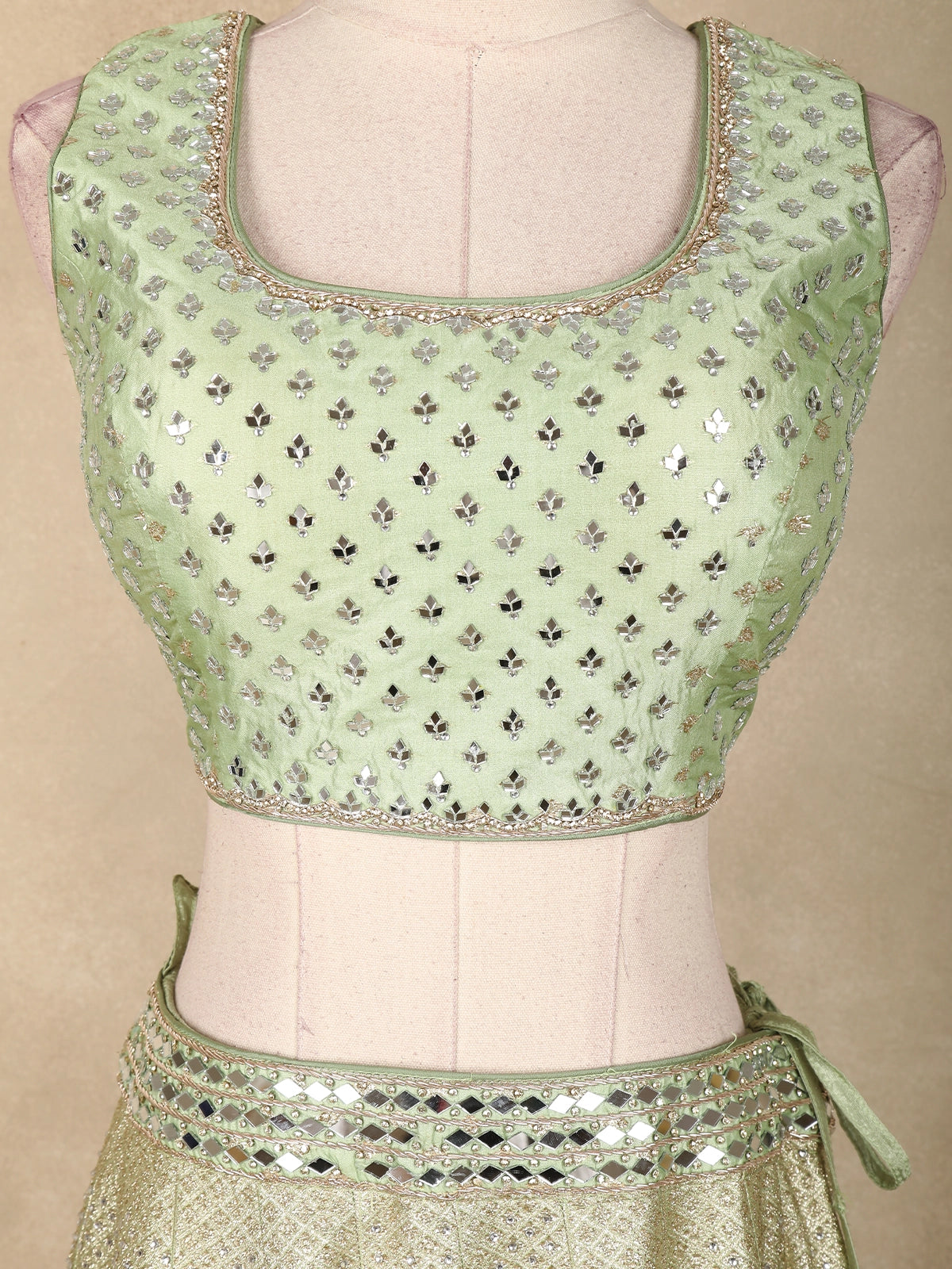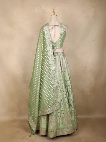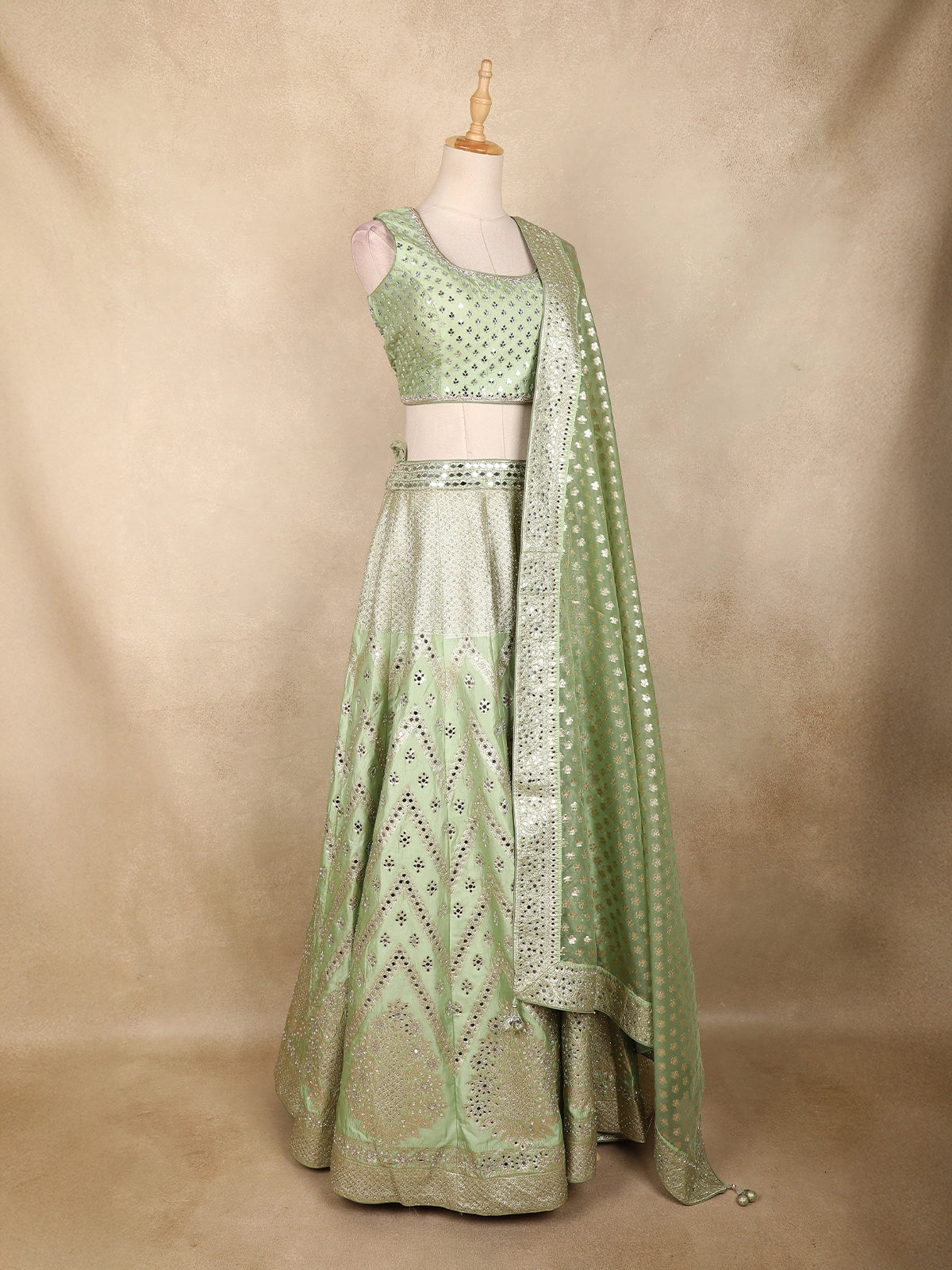 Mint Green Mirror Work Silk Lehenga Set with Dupatta