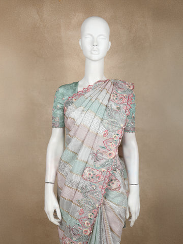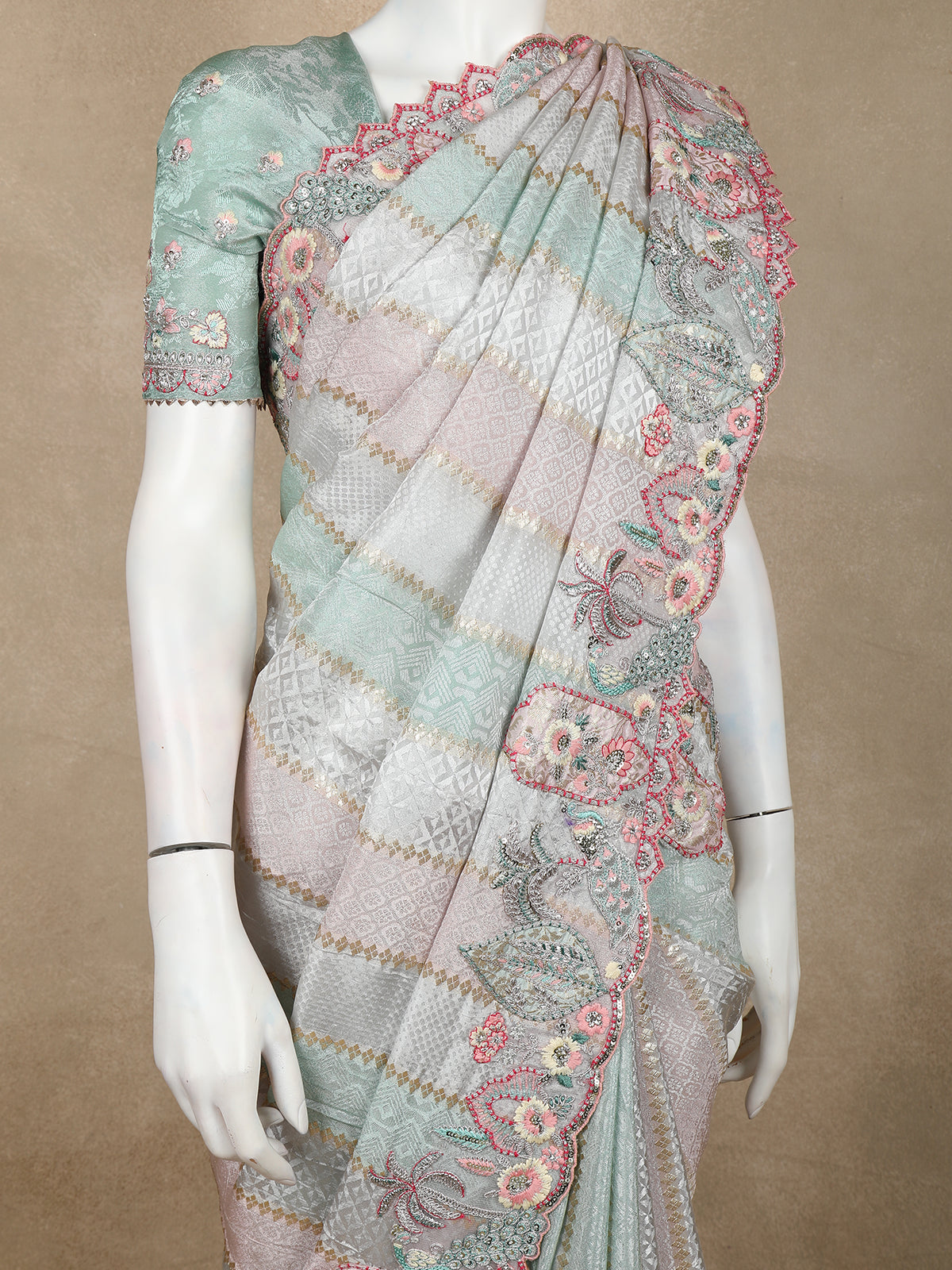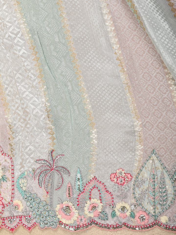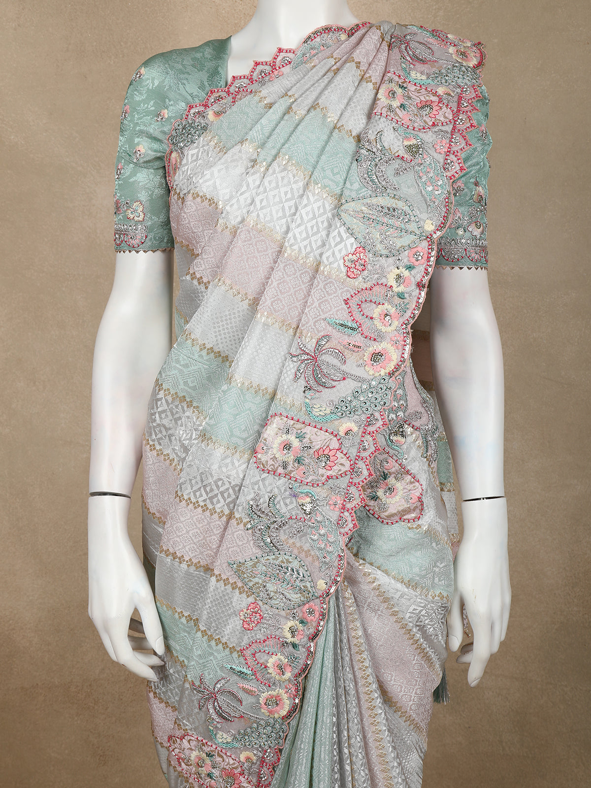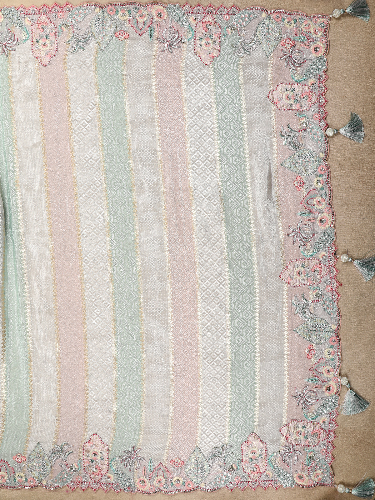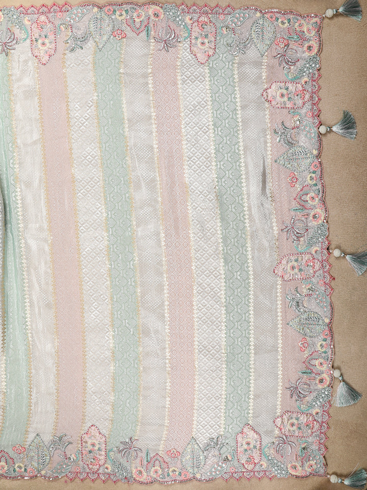Multicolour Embroidered Soft Tissue Banarasi Saree with Designer Border