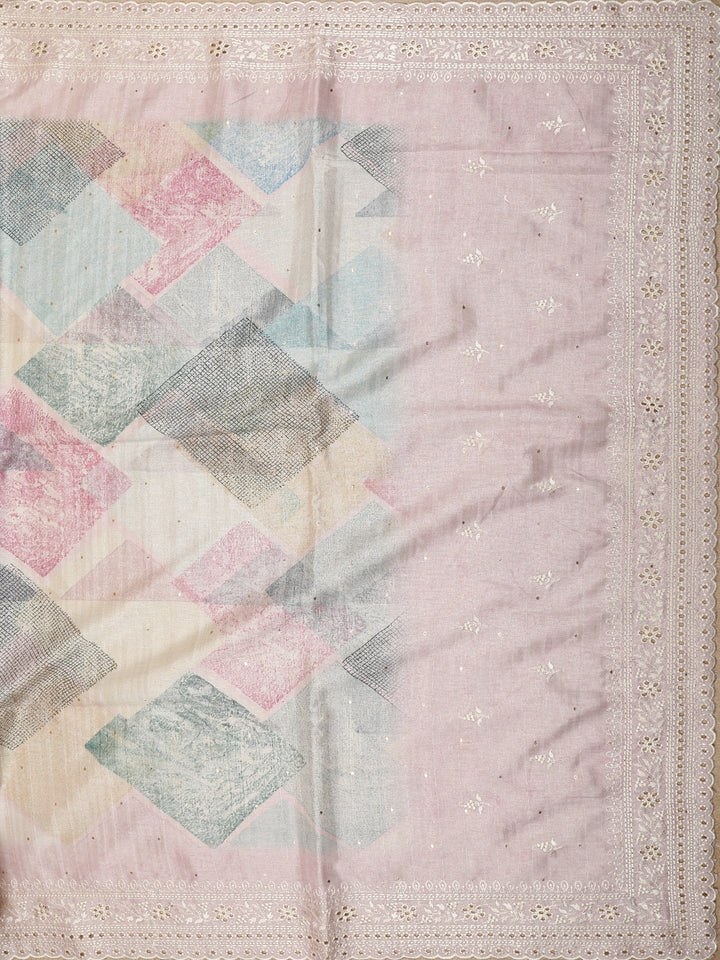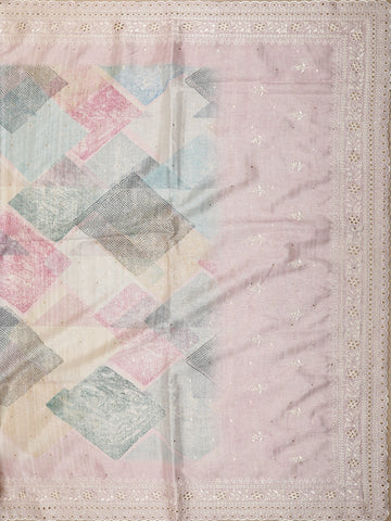 Delight in soft sophistication with this charming Multicolor Abstract Printed Design Tussar Saree, beautifully crafted to bring a dreamy and contemporary edge to your ethnic wardrobe. The soothing pastel palette blends hues of peach, lavender, mint, and cream into an artistic abstract print that exudes elegance in every drape.