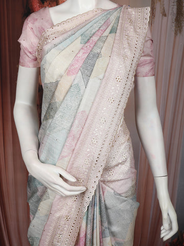 Perfect for daytime functions, festive occasions, formal gatherings, and modern celebrations, this saree embodies feminine charm and modern refinement — a perfect pick for women who love subtle yet stylish ethnic fashion.