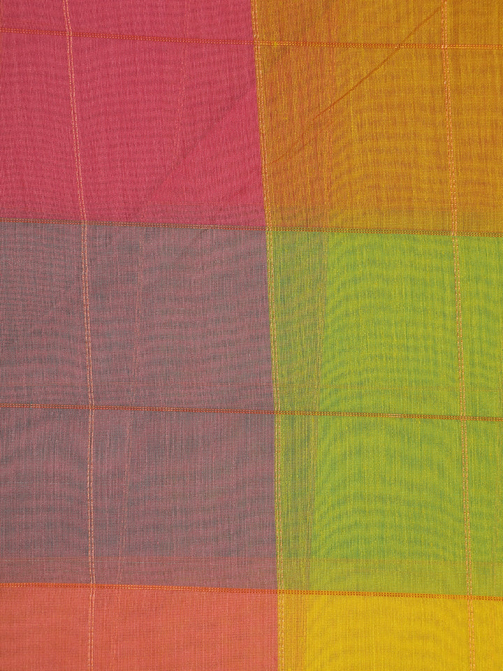 Multicolor Checked Design Cotton Saree with Contrast Border
