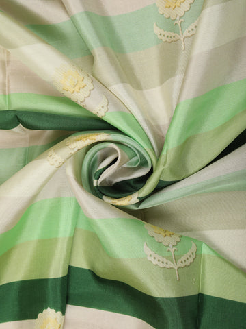This elegant Pure Crepe Silk Saree is beautifully crafted in a soothing multicolor striped palette, blending refreshing shades of soft pistachio green, ivory cream, sage green, and deep forest green. The horizontal woven stripes create a graceful flow across the saree, while the naturally fluid texture of crepe silk ensures a soft drape with a refined, understated sheen.