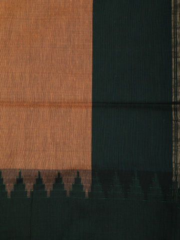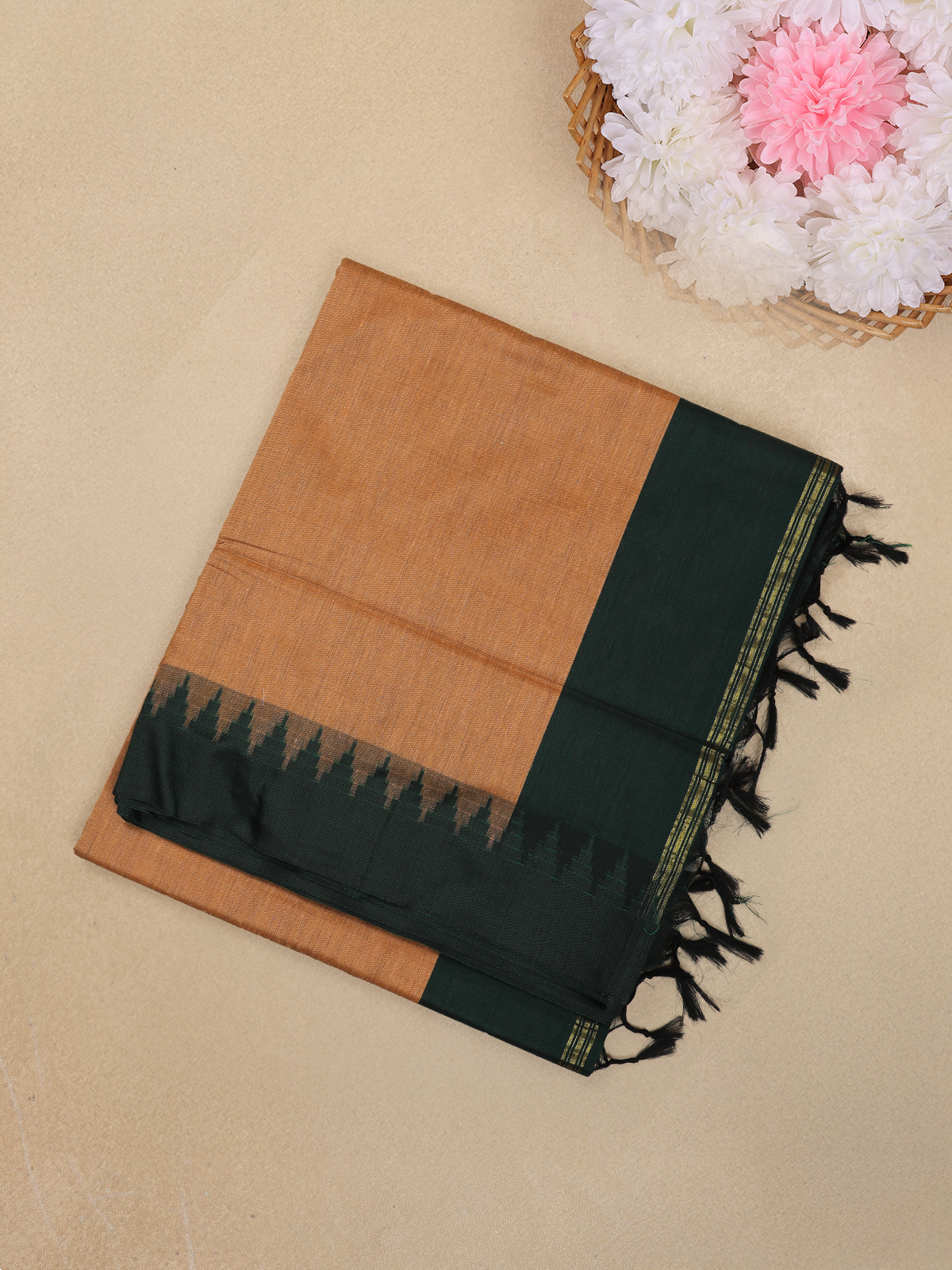 Mustard Brown Solid Design Kalyani Cotton Saree with Contrast Temple Border