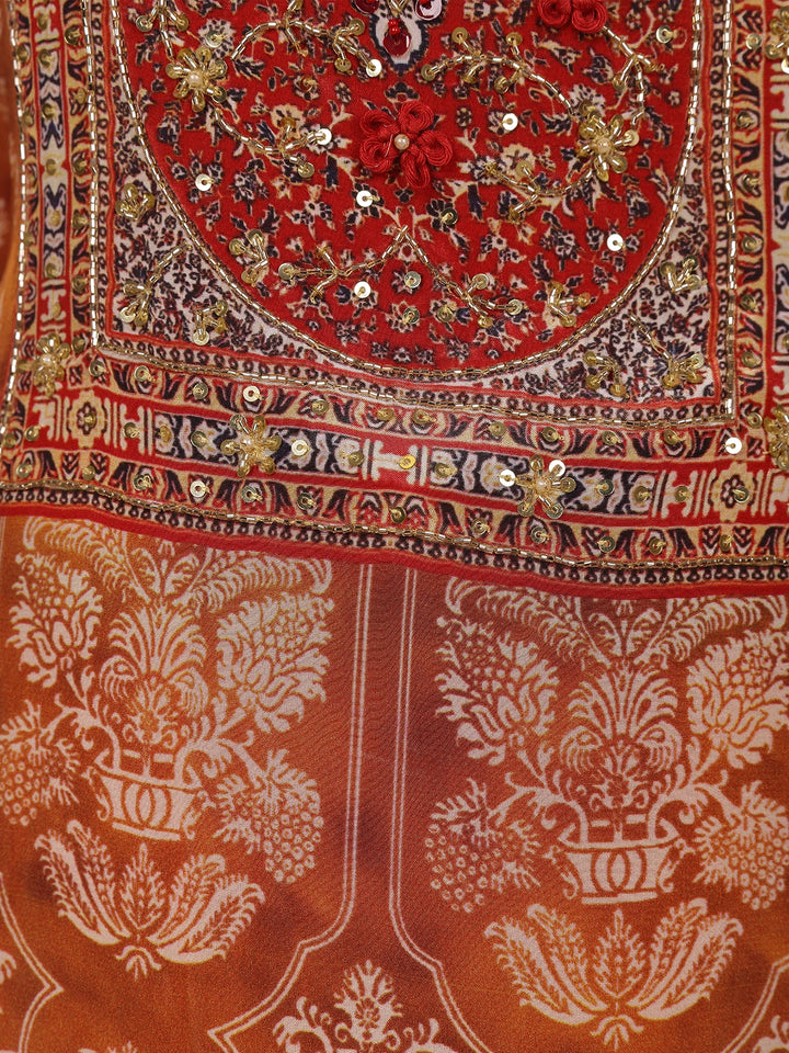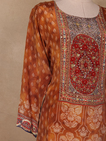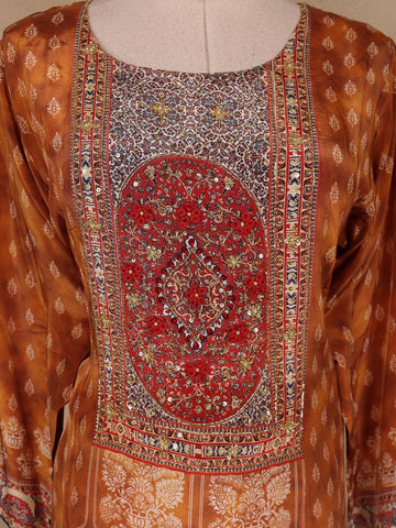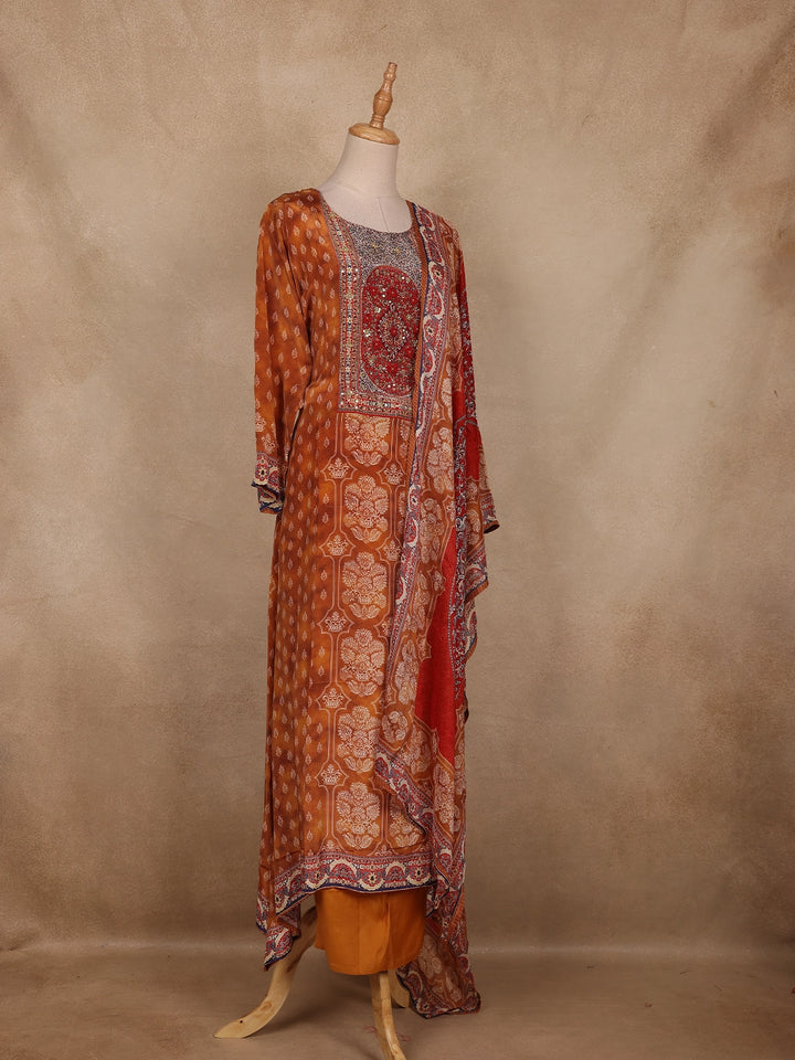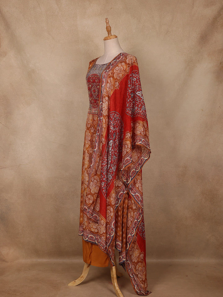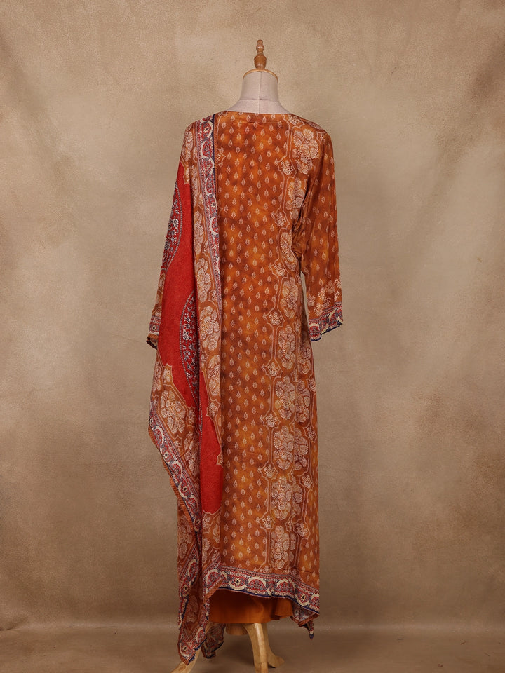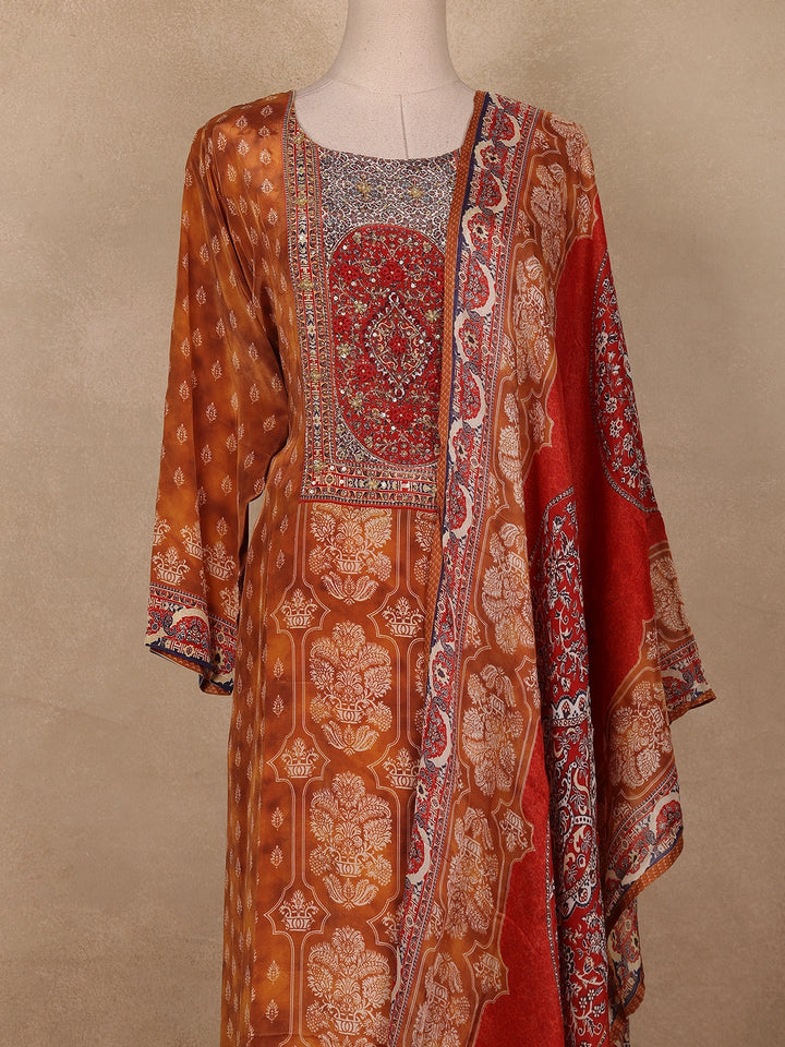 Mustard Floral Printed Crepe Salwar Suit with Dupatta