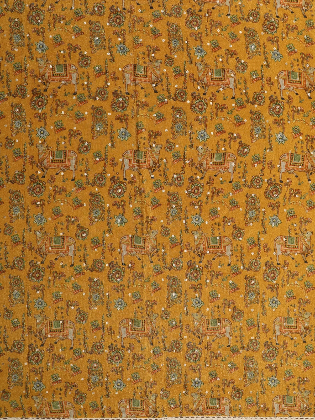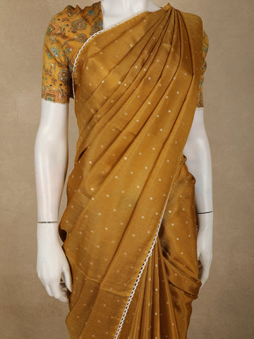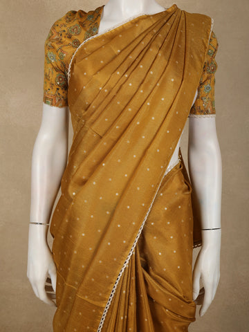 Mustard Gold Butta Woven Design Soft Tissue Saree with Scalloped Border