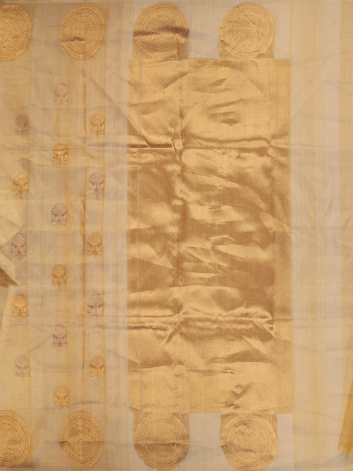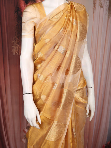 Mustard Gold Floral Butta Woven Design Tissue Saree with Gold Zari Border