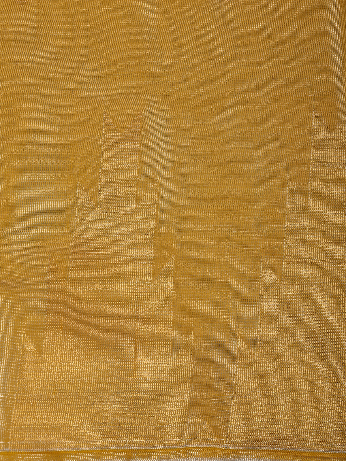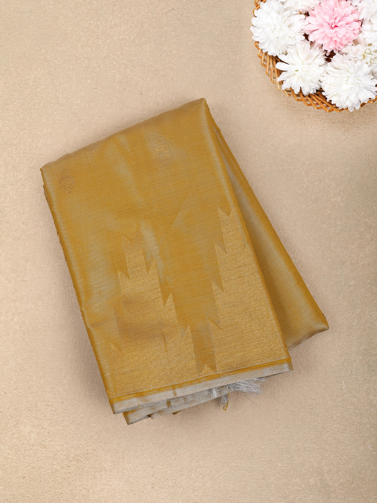 Mustard Gold Floral Butta Zari Woven Design Tissue Designer Saree with Temple Border