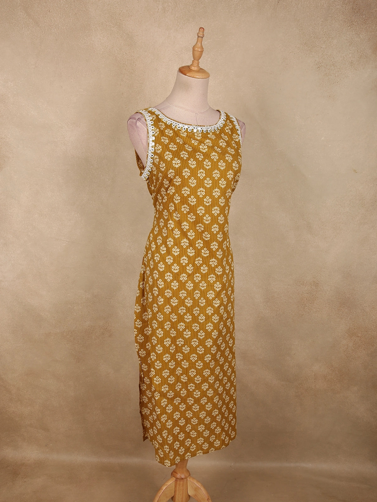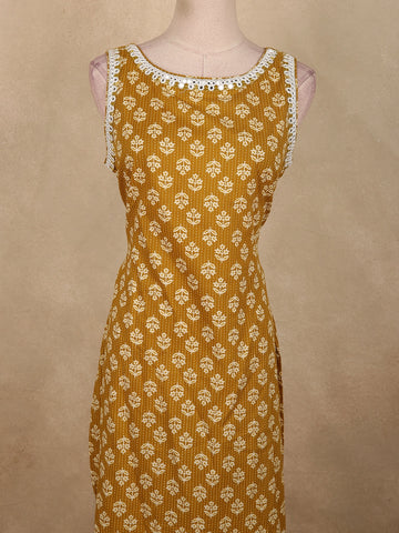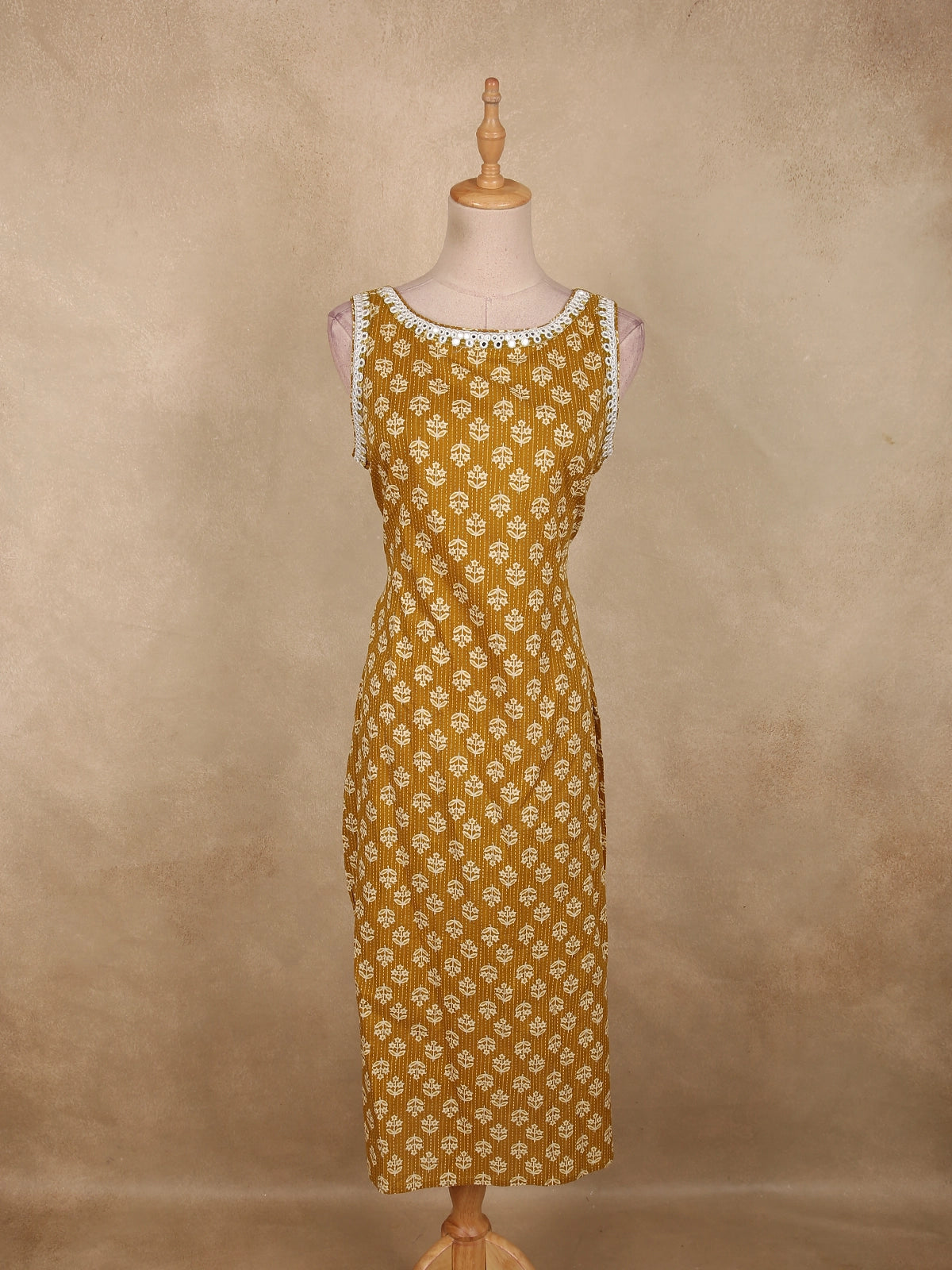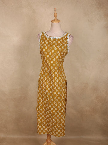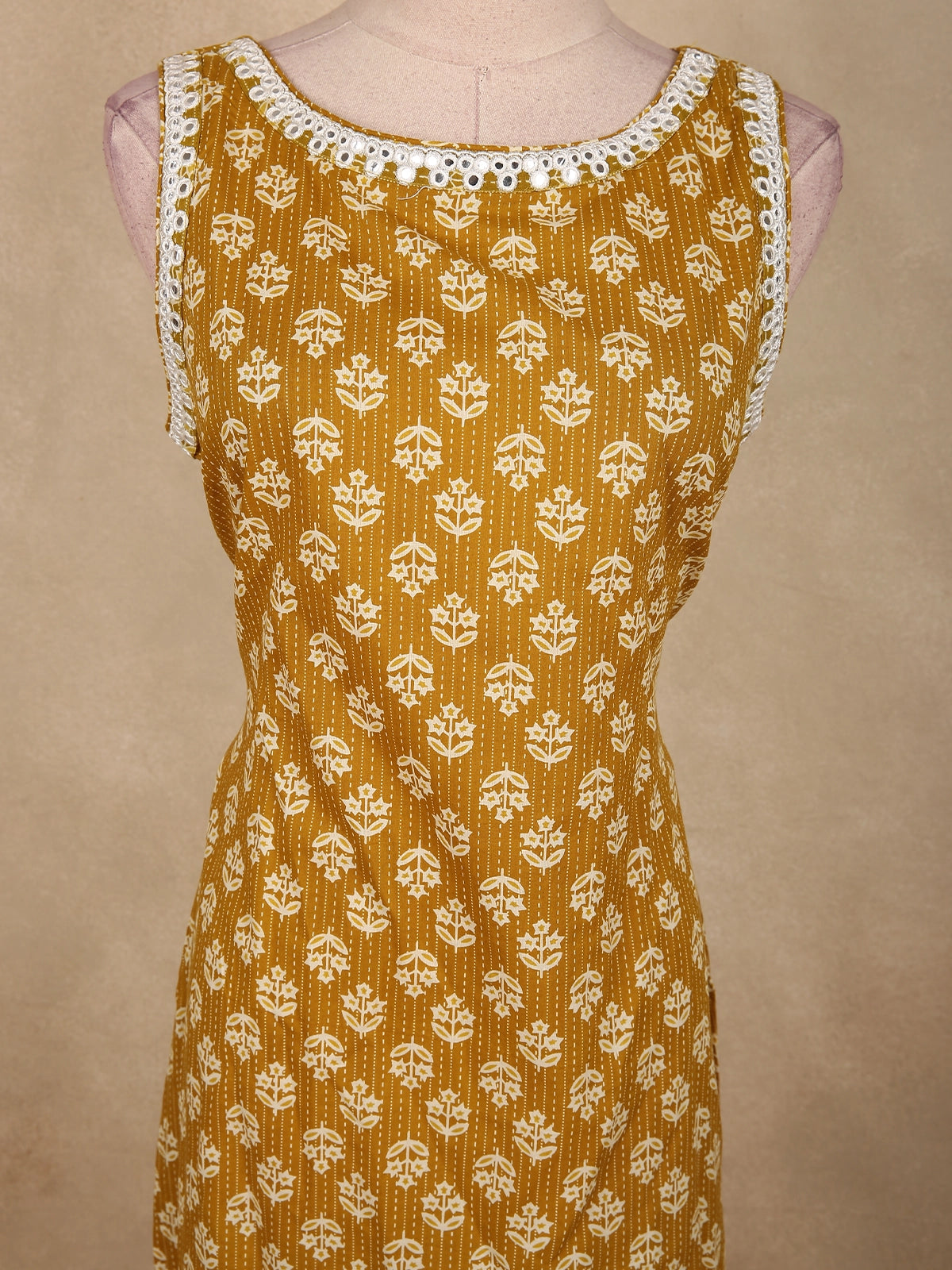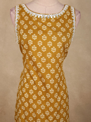 Mustard Ochre Yellow Floral Printed Design Cotton Kurti