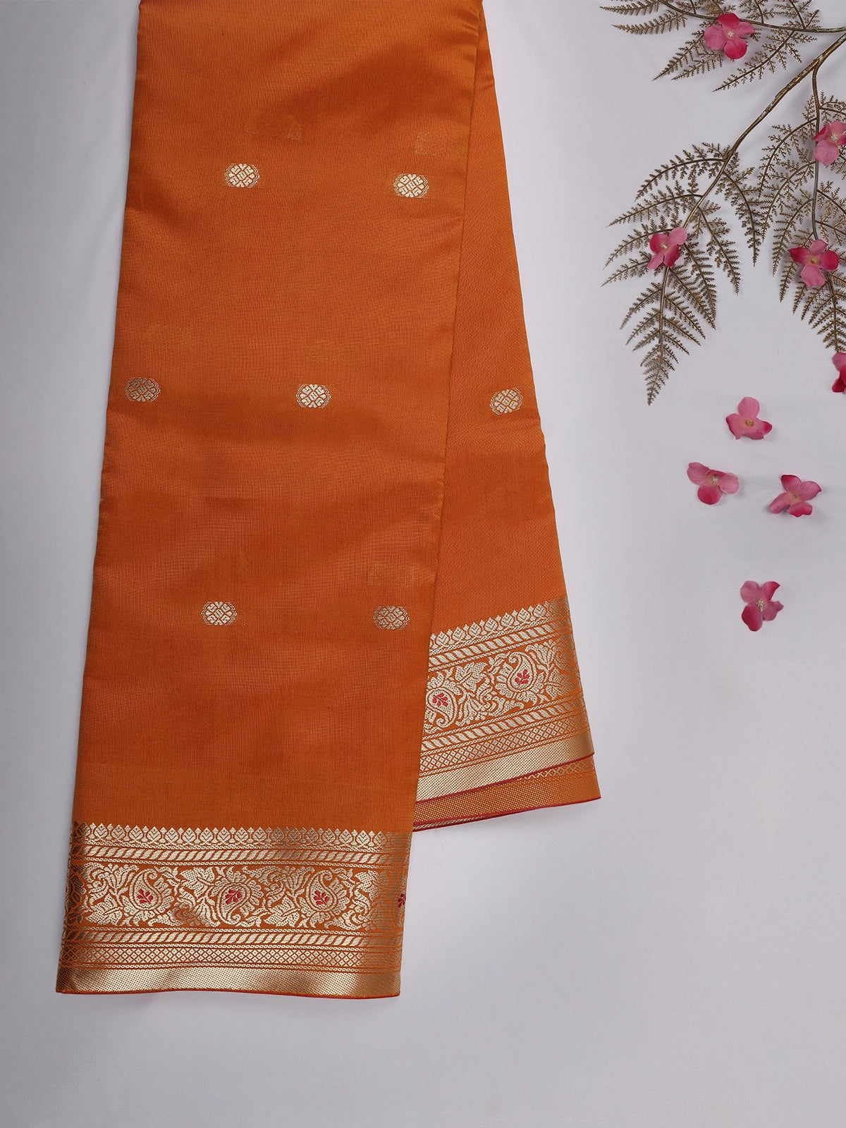 Mustard Orange Butta Woven Soft Silk Saree with Zari Border