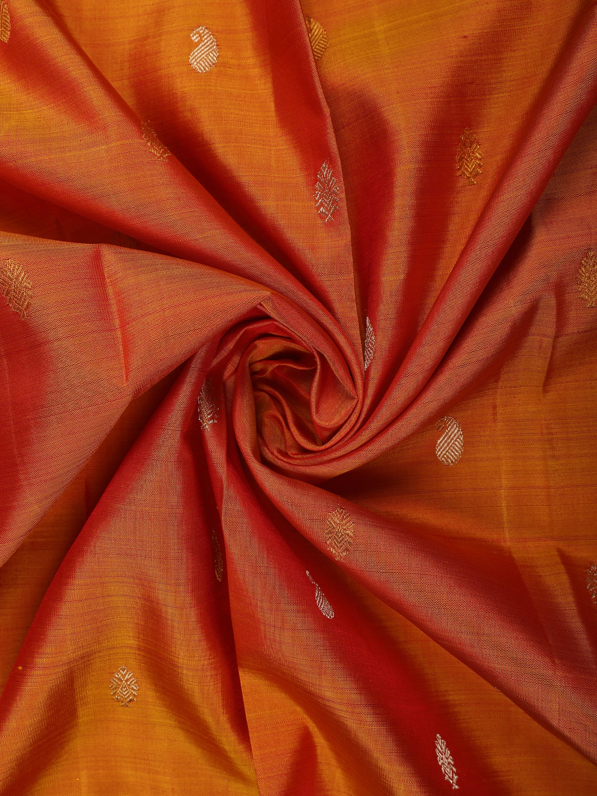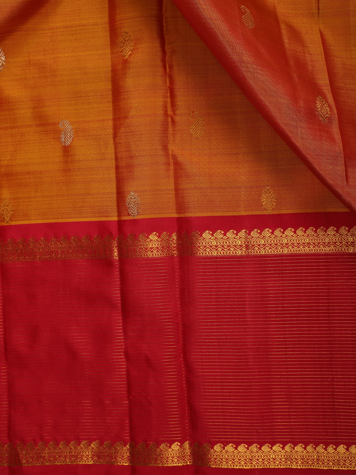 Mustard Orange Paisley Woven Design Pure Kanchipuram Silk Saree with Contrast Woven Border