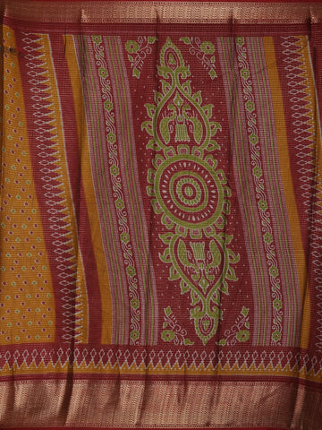 Mustard Pochampally Ikat Design Cotton Saree with Zari Border
