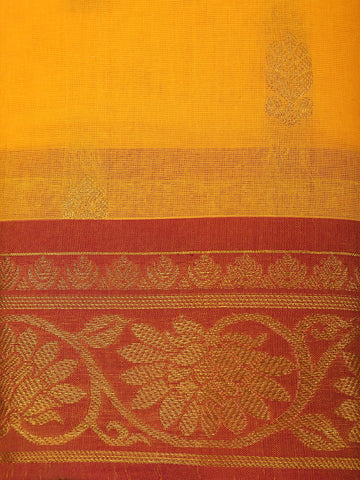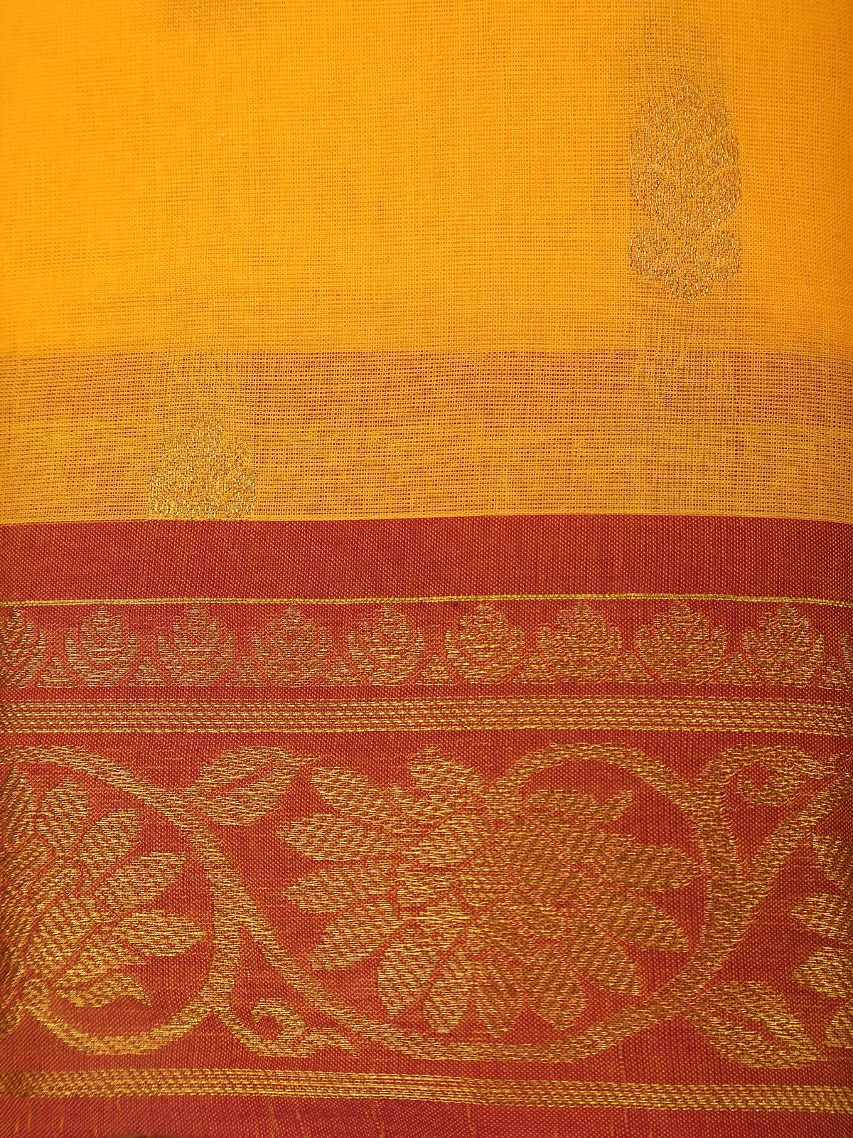 Mustard Yellow Butta Woven Design Cotton Saree with Contrast Border