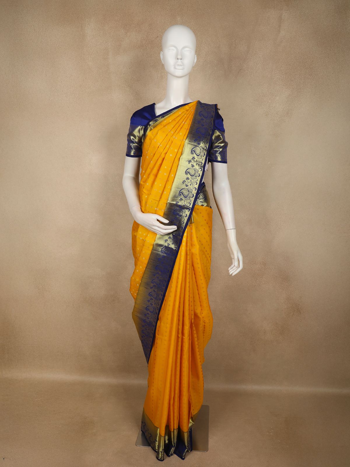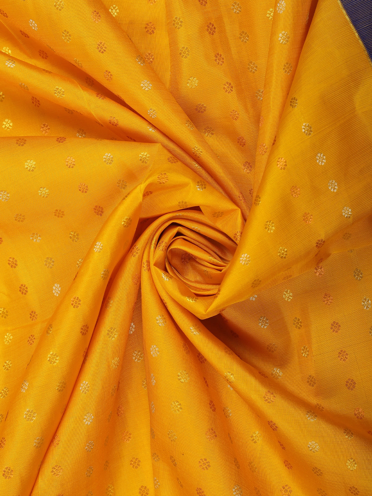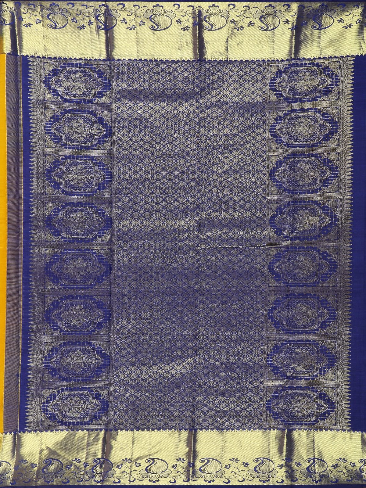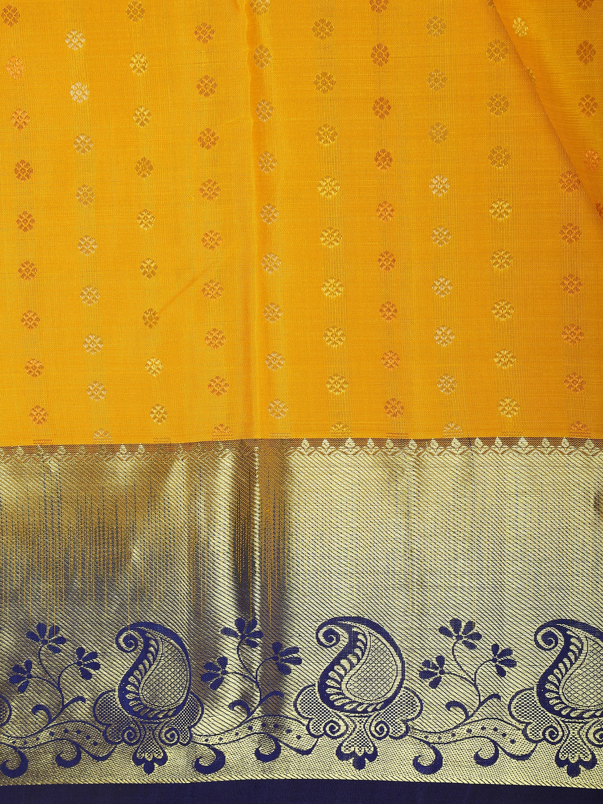 Mustard Yellow Butta Woven Design Pure Kanchipuram Silk Saree with Contrast Paisley Zari Border