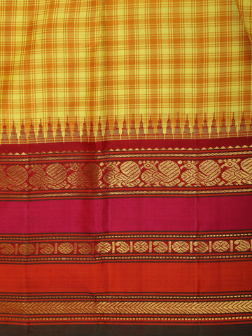 Mustard Yellow Checked Woven Design Pure Kanchipuram Silk Saree with Contrast Paisley Border