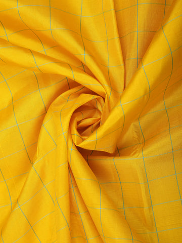 Mustard Yellow Checked Woven Design Pure Kanchipuram Silk Saree with Contrast Zari Border