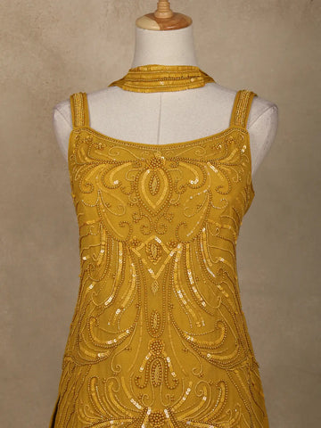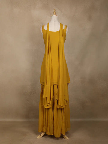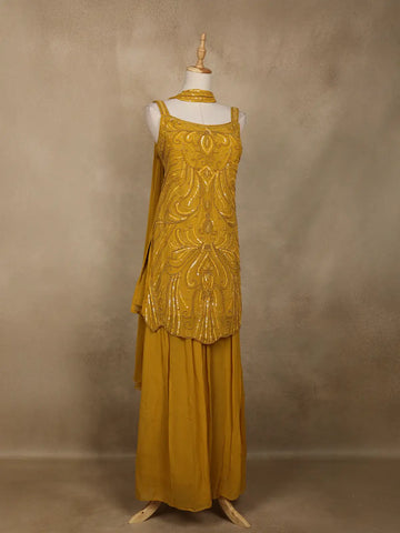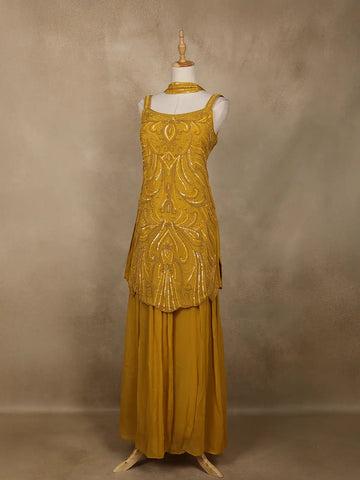 Mustard Yellow Embellished Design Georgette Palazzo Suit