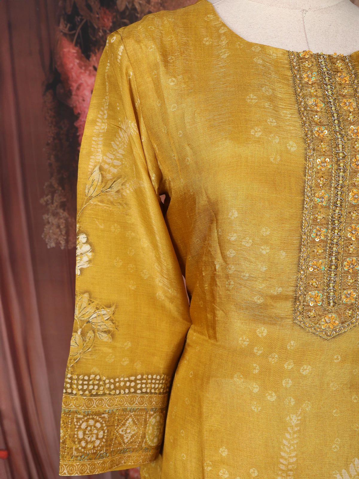 Drape yourself in cheerful charm with this Mustard Yellow Cotton Salwar Suit, featuring a beautiful floral printed design that radiates freshness and elegance. The soft and breathable cotton fabric ensures day-long comfort, making it perfect for both casual and festive wear.