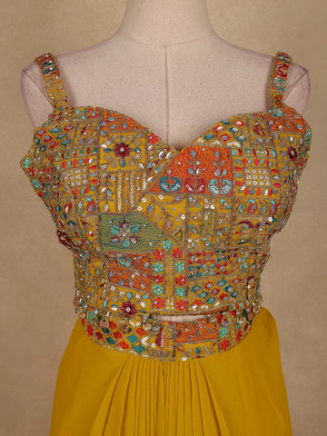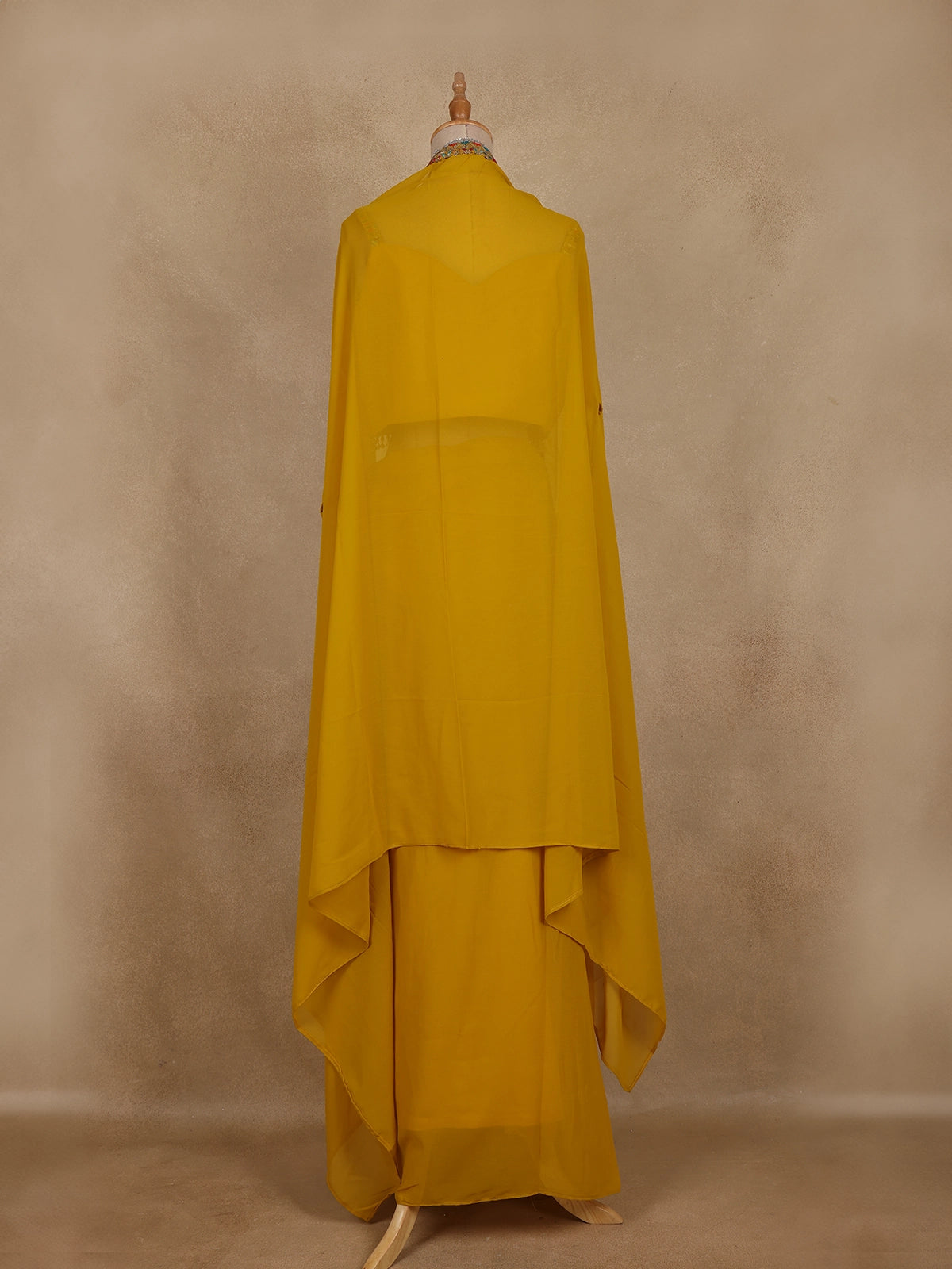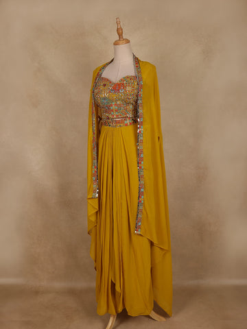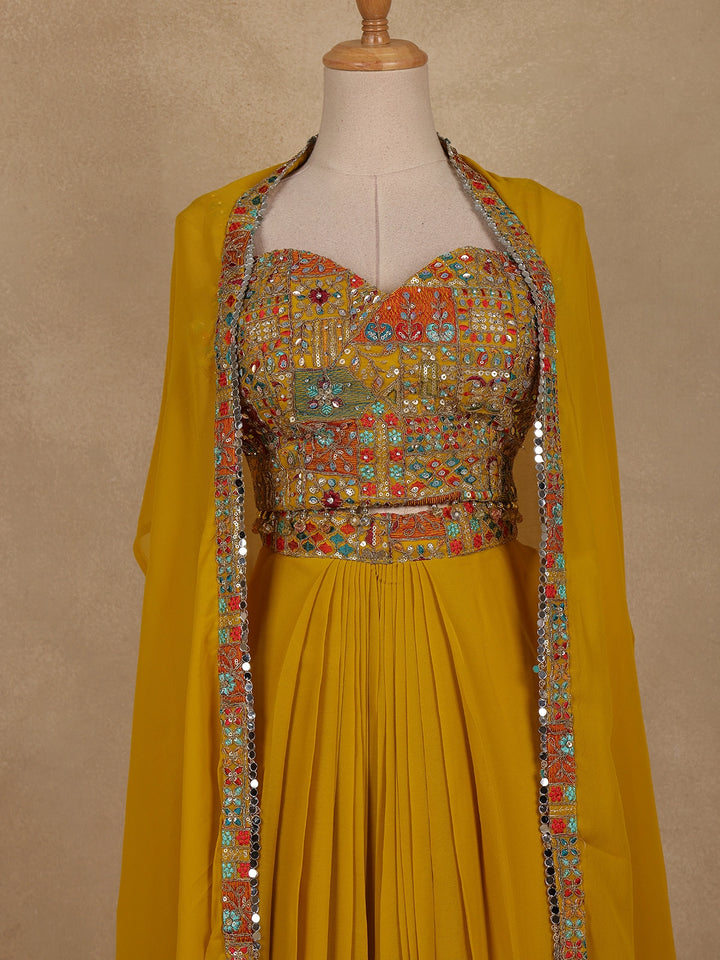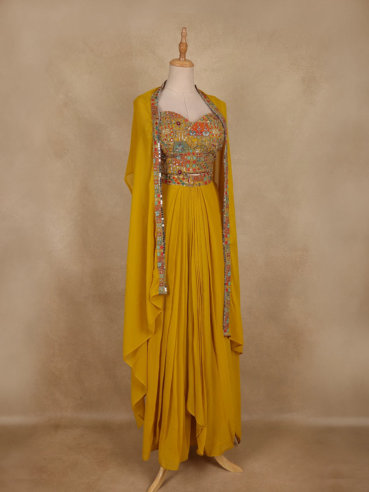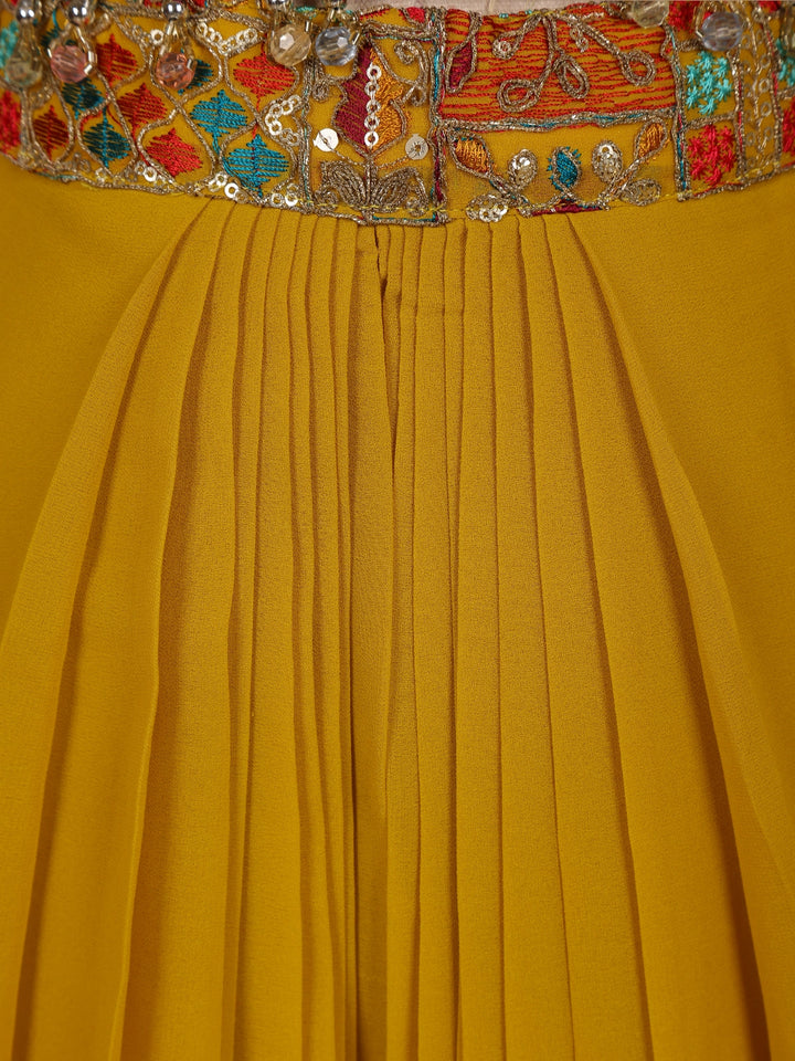 Mustard Yellow Floral Embroidered Georgette Skirt Top