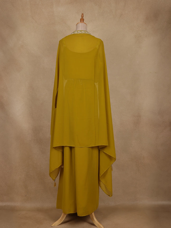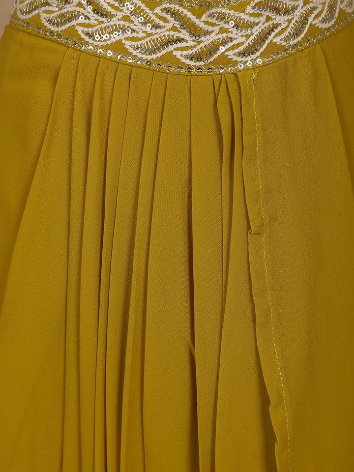 Mustard Yellow Floral Embroidery Georgette Skirt Top
